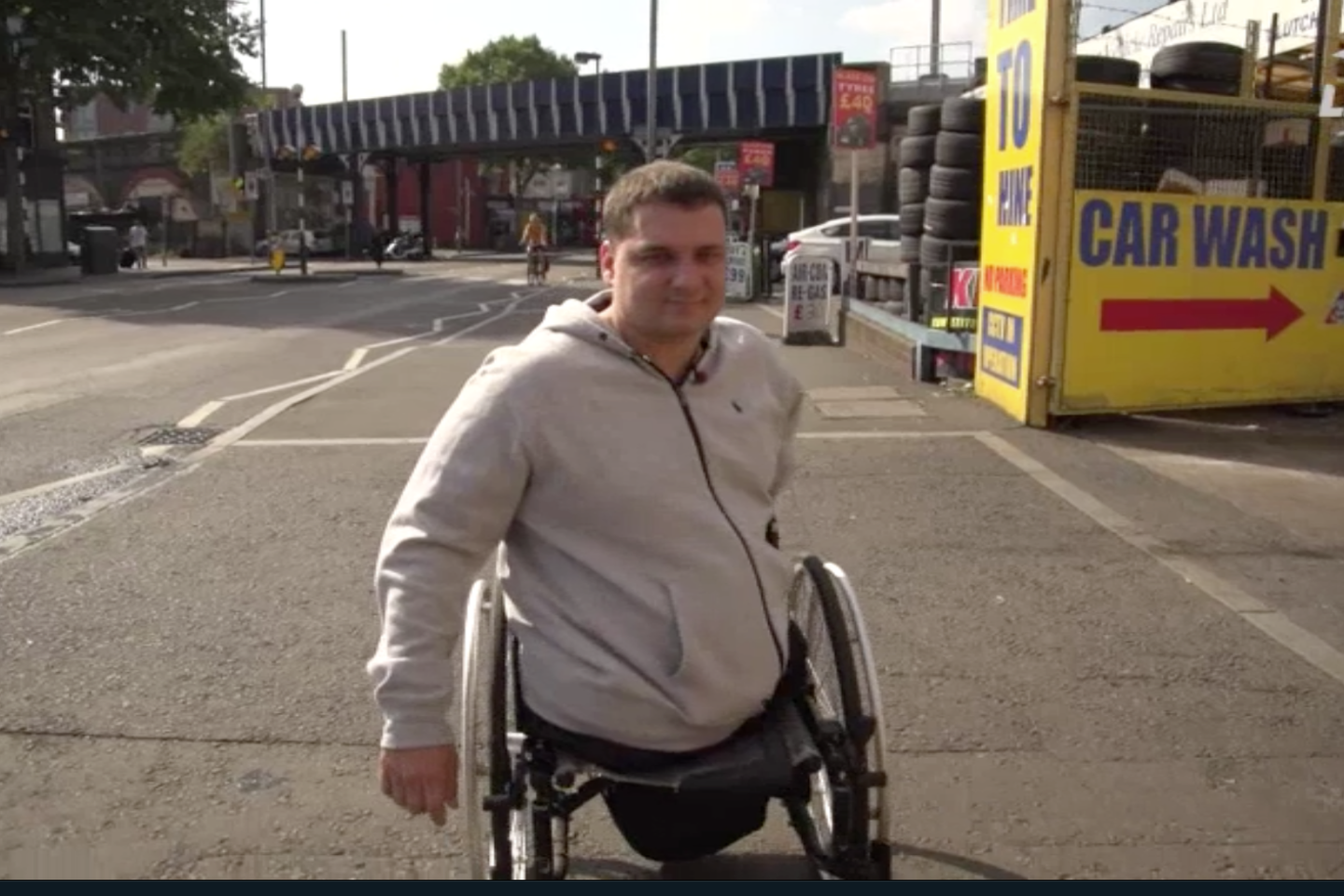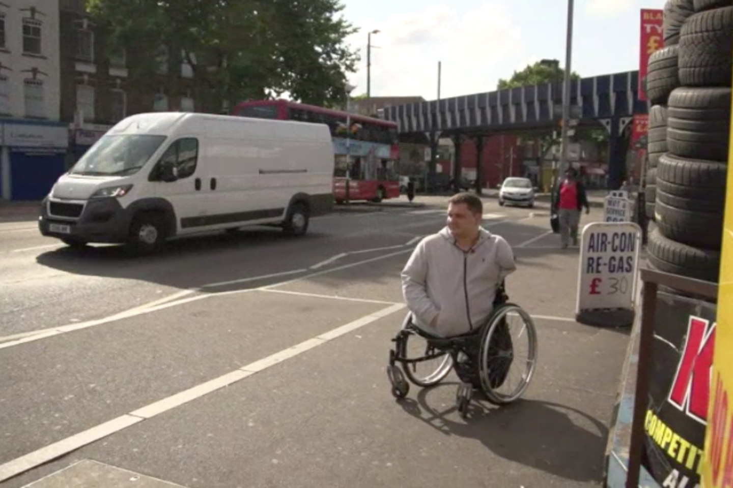 Pakeliui tenka pakeisti porą autobusų, bet vežimėlyje sėdinčio vyro tai negąsdina – autobusai pritaikyti neįgaliesiems, maža to, kelionės jiems nemokamos, tad per savaitę pavyksta sutaupyti 30–40 svarų transporto išlaidų.