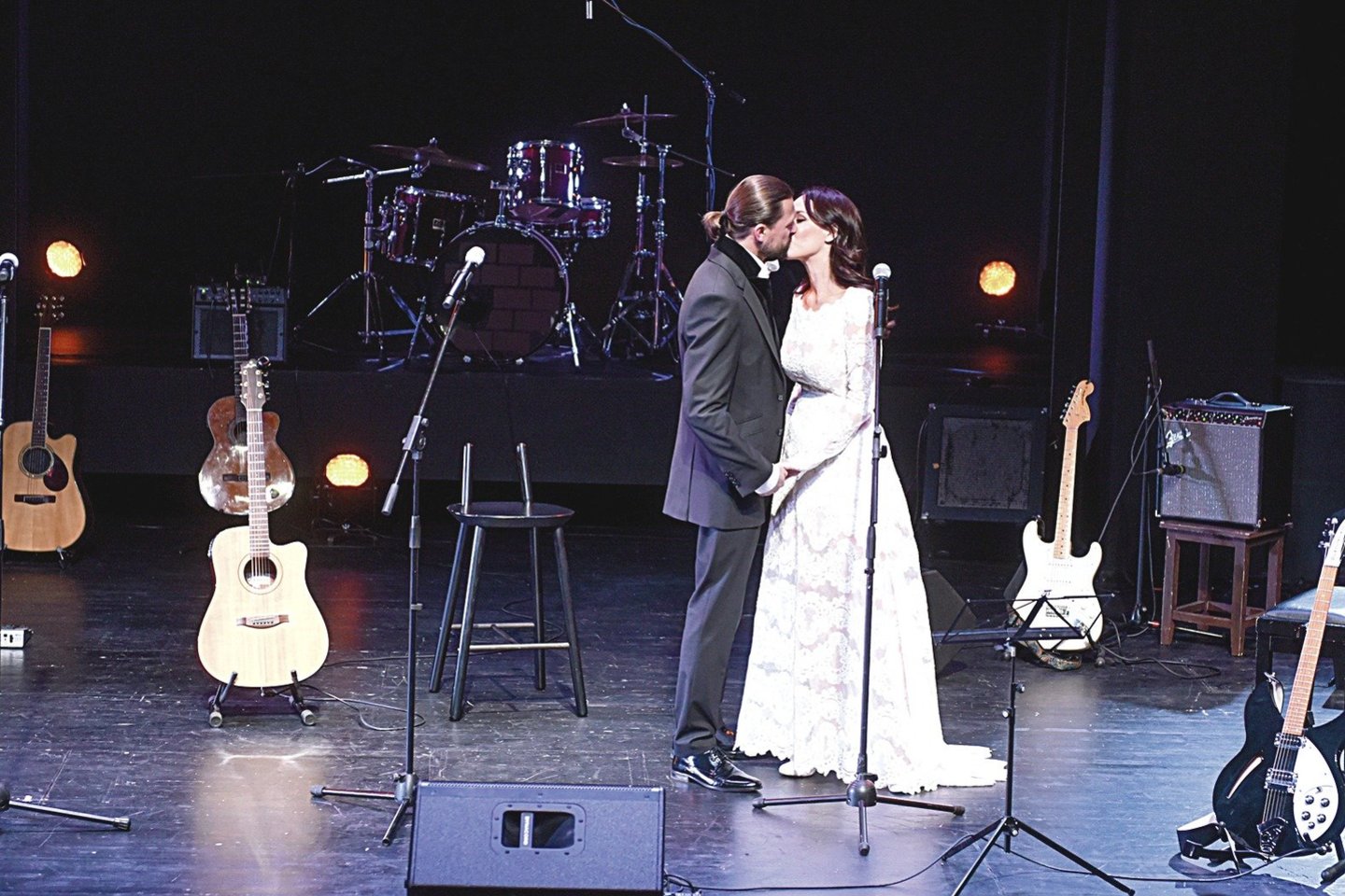 Sekmadienį 18 valandą 30 minučių, kai įprastai Mažajame teatre prasideda spektaklis, salėje buvo jaunavedžių artimieji, kolegos, bičiuliai.