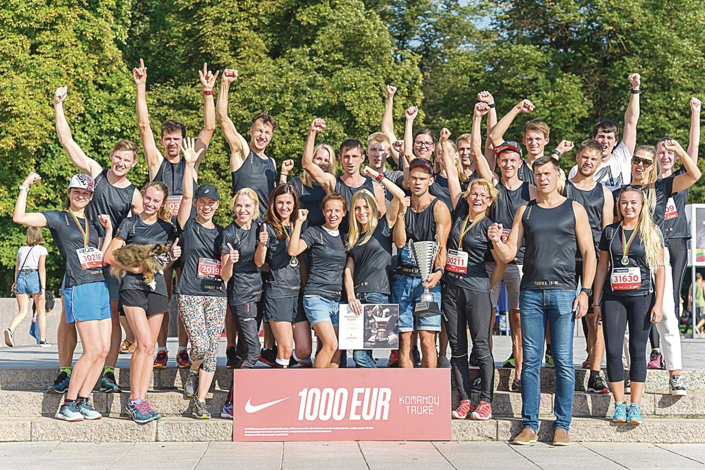 Kadangi Vilniaus maratone šįmet buvo registruojamos komandos, vilniečiai vestuvininkai šventė pergalę komandų įskaitoje.