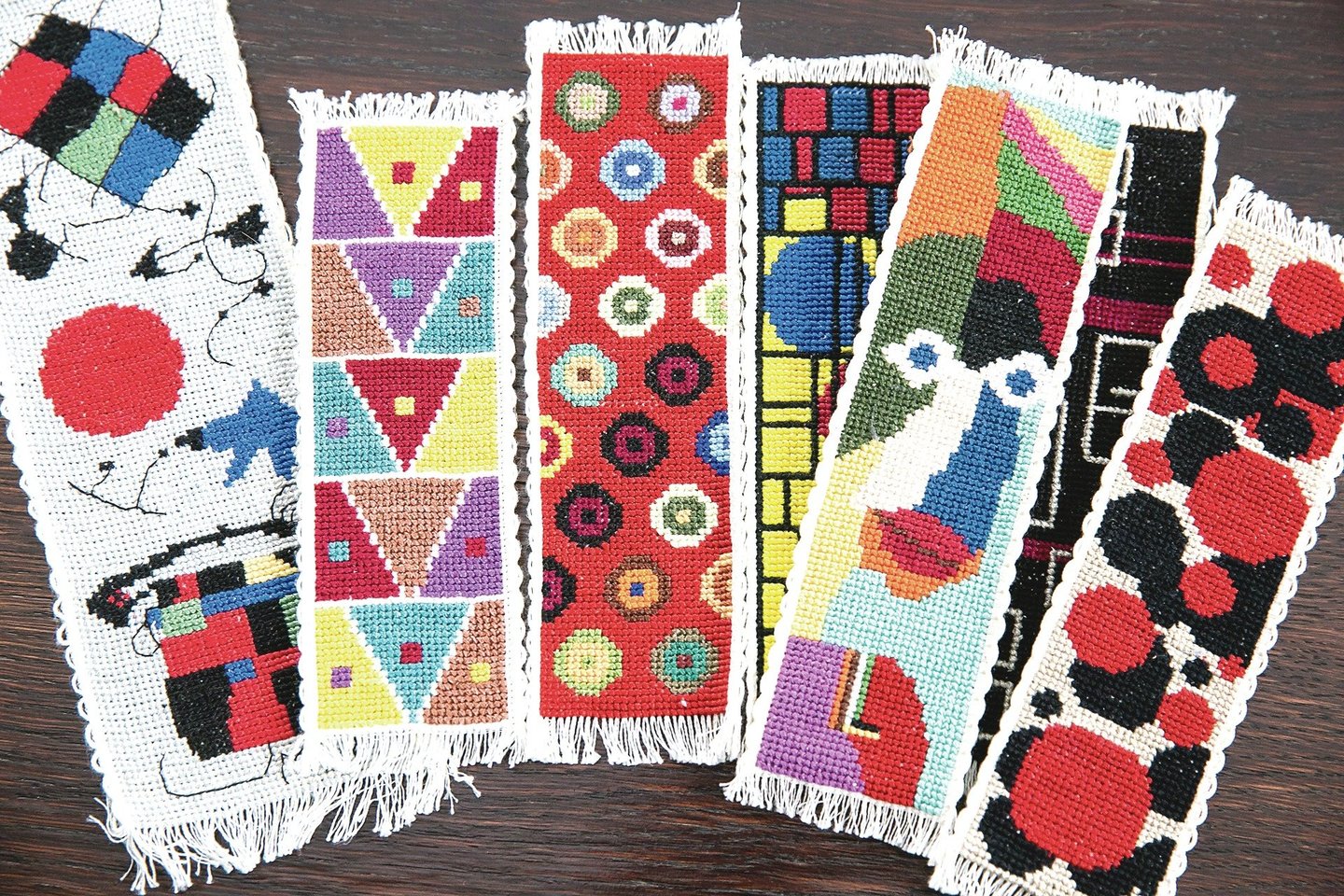 Rūtos darbeliai taip kruopščiai atlikti, kad iš pirmo žvilgsnio atrodo lyg būtų išausti. „Tai paprasčiausias siuvinėjimas kryželiu, – sakė jų autorė. – Taip, daugelis sako, kad tie skirtukai atrodo lyg išausti.“