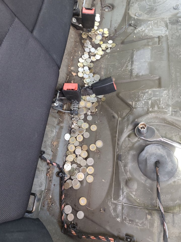 Savininkė, atlenkusi galines automobilio sėdynes, rado didžiulį kiekį monetų. Pasidalinus nuotrauka internete, žmonės ėmė komentuoti juokaudami ir spėliodami, iš kur galėjo atsirasti šis „lobis“.