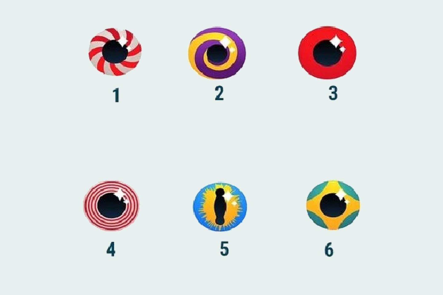 Kad teisingai jį atliktumėte, pirmiausia atsipalaiduokite. Tada įsivaizduokite save apsuptą pažįstamų žmonių. Kai pavyks, pažvelkite į paveikslėlį ir iš karto pasirinkite bet kurią pavaizduotą akį.
