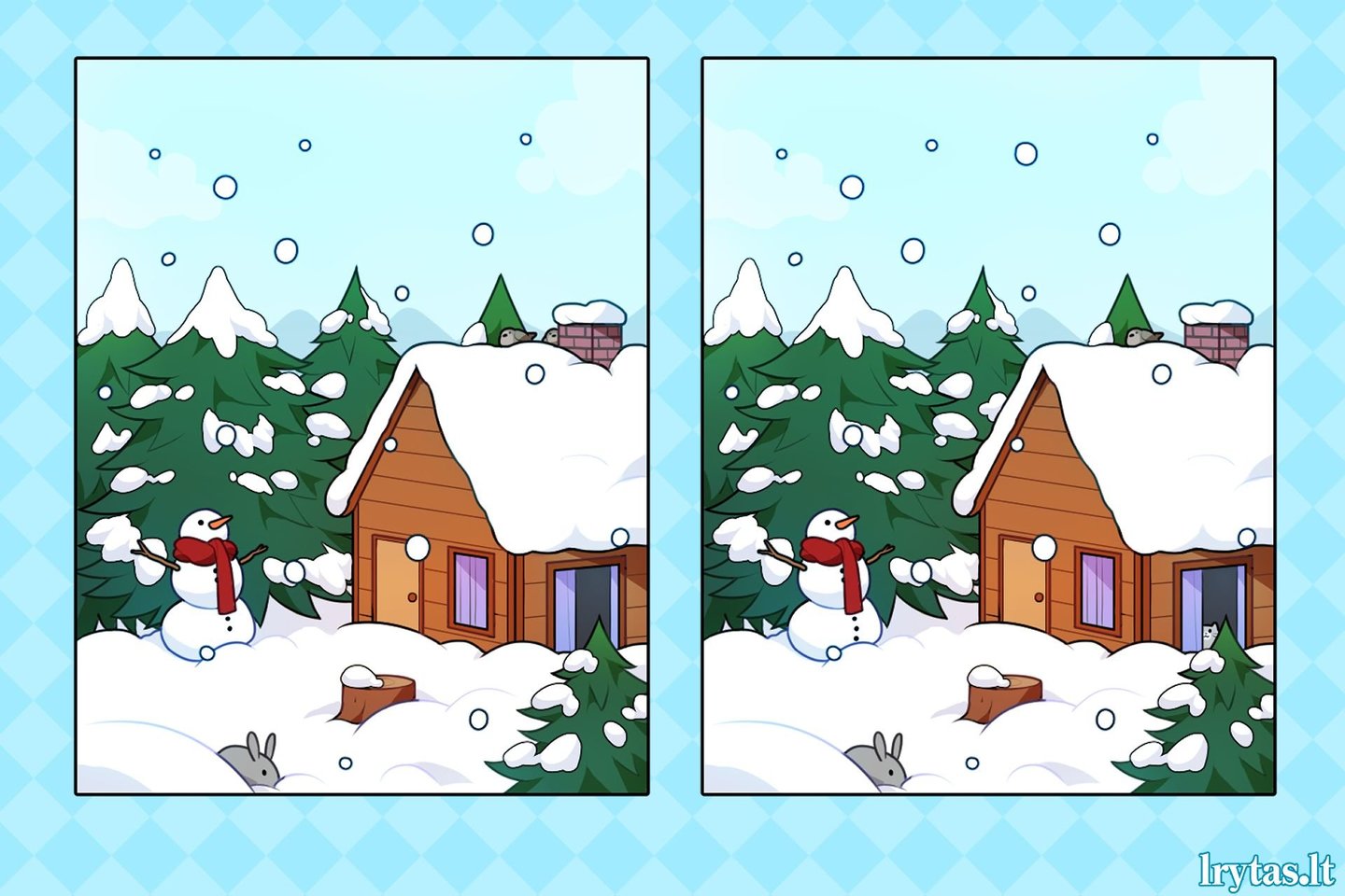 Žiemiškas vaizdelis: suraskite 5 skirtumus per pusę minutės