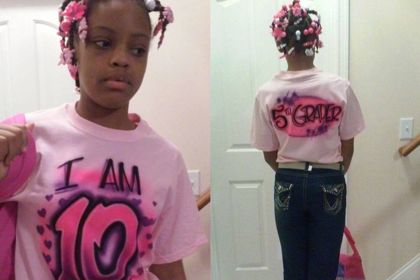 Pasibaisėjęs tėtis nusprendė paauklėti atžalą – ir padarė tai labai originaliai. Jis užsakė jai rožinius marškinėlius, ant kurių užrašytas jos tikrasis amžius ir kelintoje klasėje ji mokosi. Dukrai į plaukus priraišiojo vaikiškų papuošimų ir liepė nešioti kuprinę su princese.