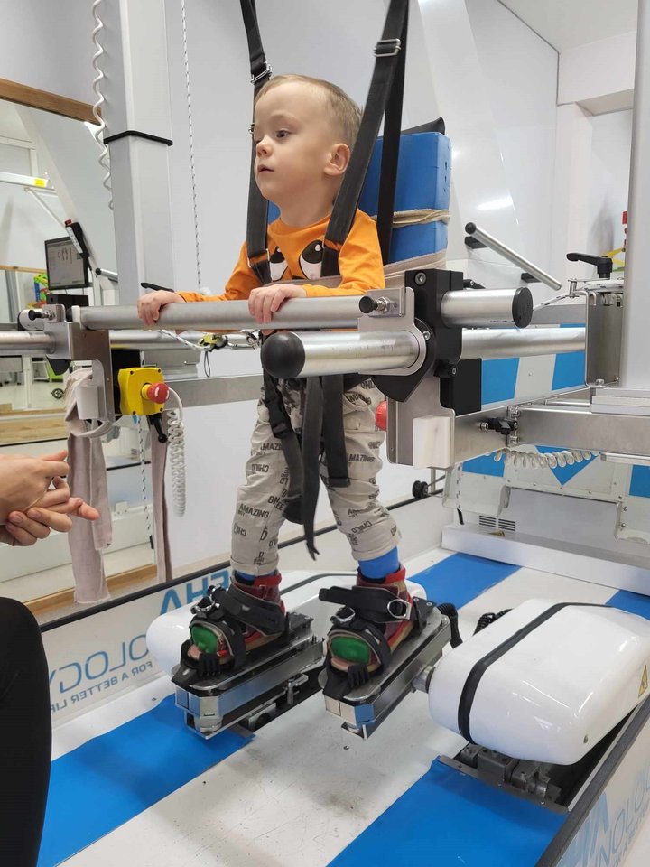 Berniukas vis dar savarankiškai nevaikšto, jo raida atsilieka, todėl jam sunku atlikti kasdienius veiksmus, kurie bendraamžiams atrodo savaime suprantami.