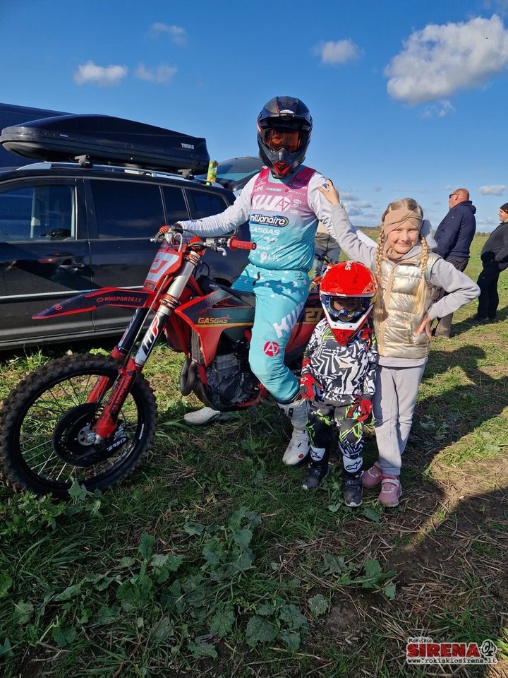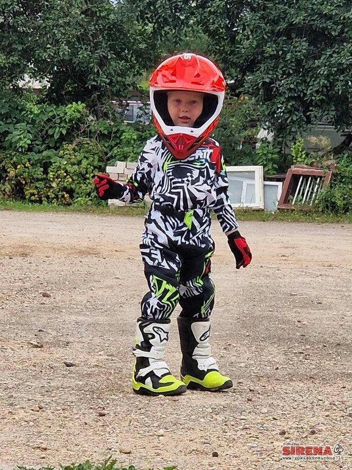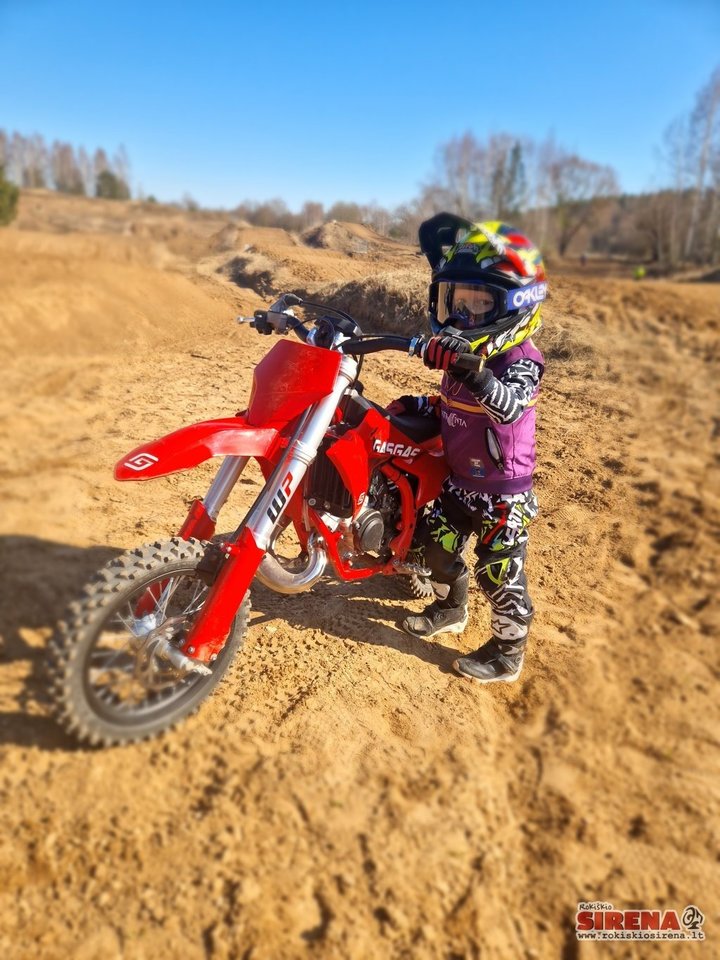 Kitas dalykas – visas prieš startinis pasiruošimas: turi važiuoti į varžybų vietą anksčiau, apšilti, techniką pasiruošti. „Virtuvė“ jau yra visai kitokia, o ir trasoje važiuoja nebe vienas. Šį kartą varžybose jie važiavo devyni ir tenka stebėti ne tik varžovus, trasą, bet ir teisėjų rodomus ženklus bei aplinką. Čia buvo „krikštas“. Vasarą planuojame dalyvauti ir tikrose varžybose – Lietuvos motokroso čempionate. Jei nesuklysiu, jis atstovaus pačių mažiausiųjų: 4–7 metų amžiaus klasę.