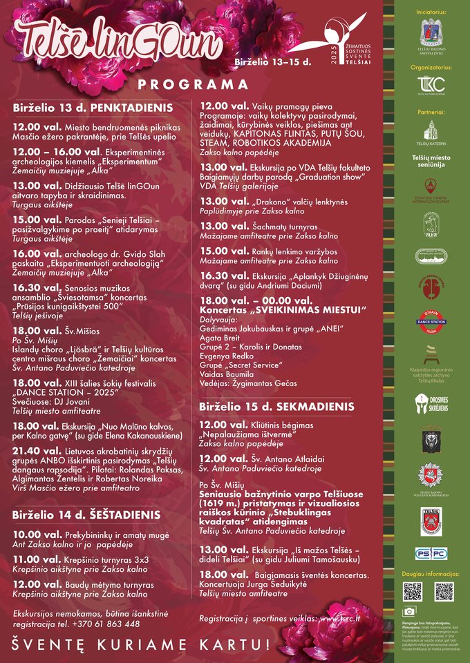 Organizatoriai užtikrina – Telšiai pasiruošę priimti visus! Atvykę svečiai iš kitų miestų galės nemokamai įsigyti interaktyvius šventės žemėlapius su QR kodais, kurie padės lengvai rasti renginių vietas. Nuskenavę žemėlapyje esančius QR kodus, lankytojai galės susipažinti su išsamia šventės programa, rasti informaciją apie renginių vietas bei patogiai susiplanuoti savo maršrutą Telšiuose.