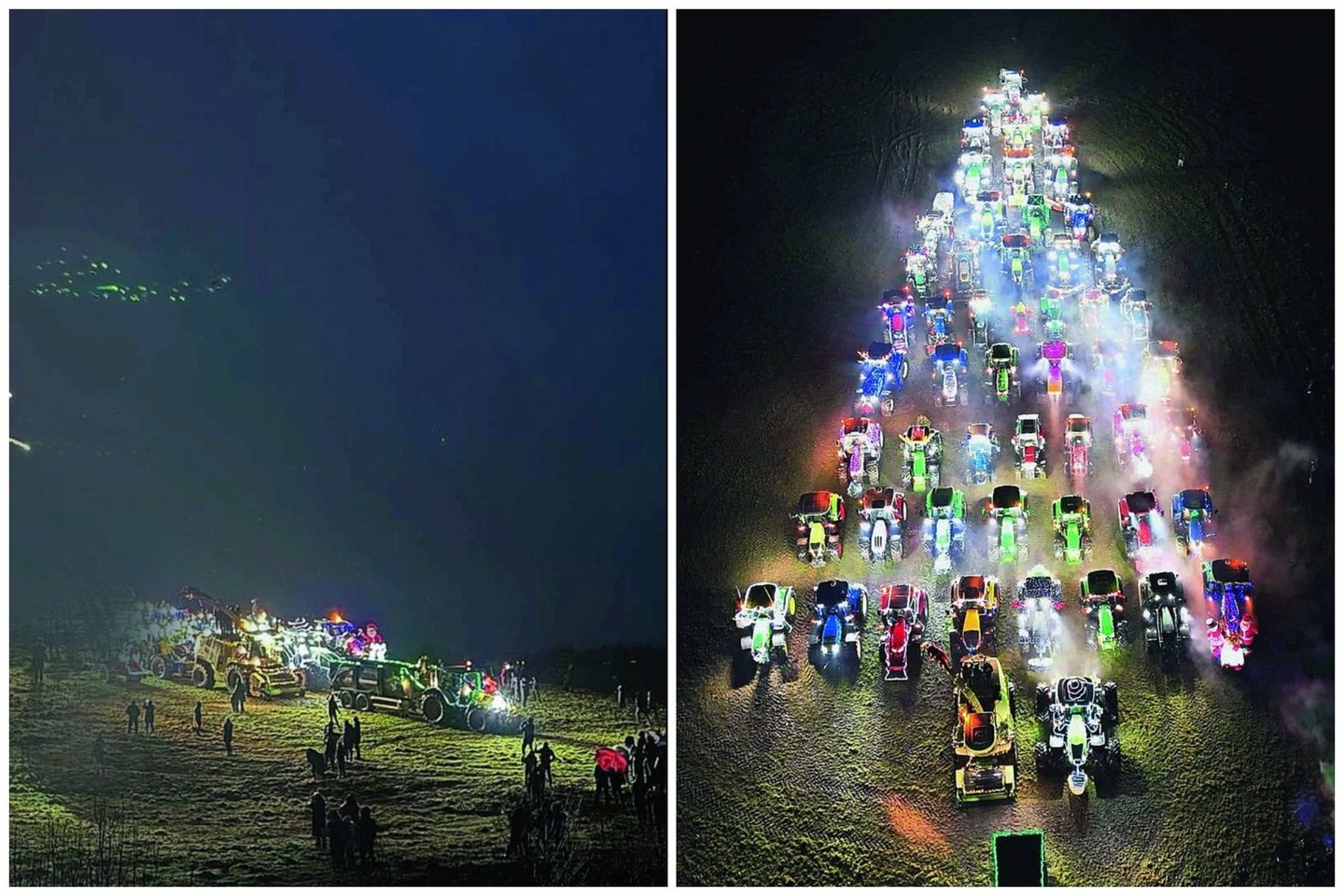 Ūkininko Ernesto Kairio pievoje išsirikiavę 56 traktoriai suformavo didelę Kalėdų eglę.