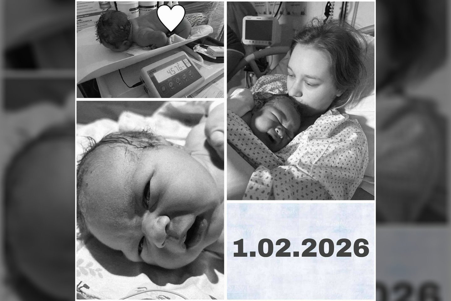 „Gimdymas nebuvo lengvas. Sąrėmiai buvo stiprūs, pastangos – milžiniškos, nes sūnelis nuo pat pradžių parodė, koks jis didelis – svėrė net 4570 gramų. Tačiau merggin nė karto nesiskundė. Susikaupusi, rami, nepaprastai drąsi, ji gimdė su didžiuliu ryžtu. Tarp sąrėmių gebėjo nusišypsoti, o jos akyse buvo matomas šimtaprocentinis pasitikėjimas akušerėmis, kurios darė viską, kad padėtų pereiti šį sunkų, bet gražų procesą“, – rašoma Lešno gimdymo namų įraše.