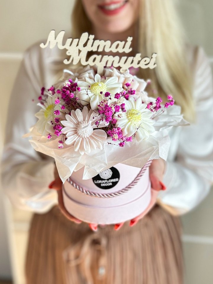 - išskirtinės muilo gėlių puokštės – tai dovana, kuri niekada nenuvys, šių gėlių žydėjimu džiaugtis galima kur kas ilgiau nei gyvomis gėlėmis;