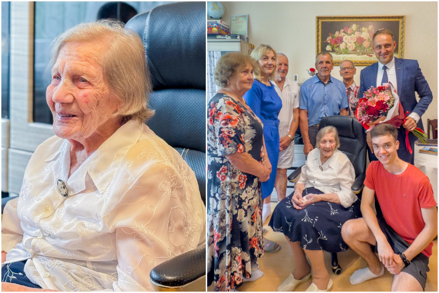 Jubiliejaus proga šimtametę sveikino ir 20 anūkų, 26 proanūkiai bei du proproanūkiai.