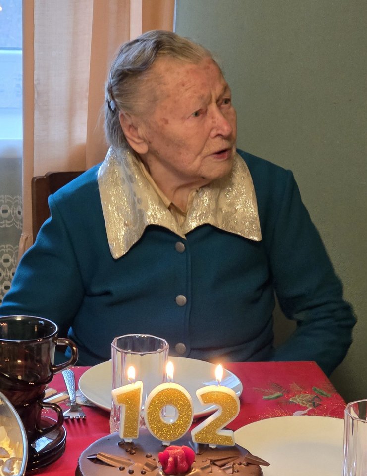 Agrifina Einikytė džiaugėsi atvykusiais svečiais, dėkojo už parodytą dėmesį ir kvietė visus paragauti gimtadienio torto. Kartu papasakojo apie savo kasdienybę, prisiminė jaunystės dienas.