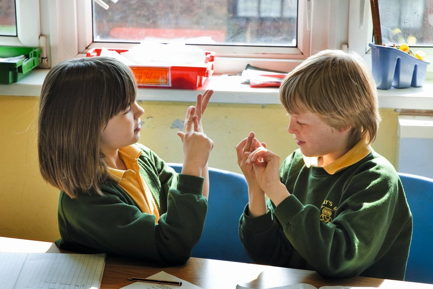 Vertėjai, kuriuos matome per televiziją verčiančius iš girdinčiųjų kalbos į gestų, vartoja visai kitokią kalbą. Tai kalkinė kalba, kai kiekvienas žodis parodomas atitinkamu gestu. Ji netgi nevadinama gestų kalba, o tik kalbėjimo būdu, forma. Tokia kalkinė kalba skirta kurtiesiems susikalbėti su girdinčiaisiais, neprigirdinčiaisiais ar apkurtusiaisiais.