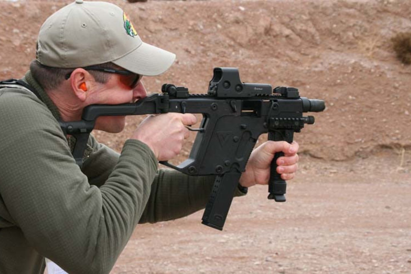 Sugrįžkime prie tos nuotraukos viršuje – kur yra „KRISS Vector“ vazmdis? Ne, viršuje matomas žibinuvėlis, o vamzdis yra tiesiai po juo.