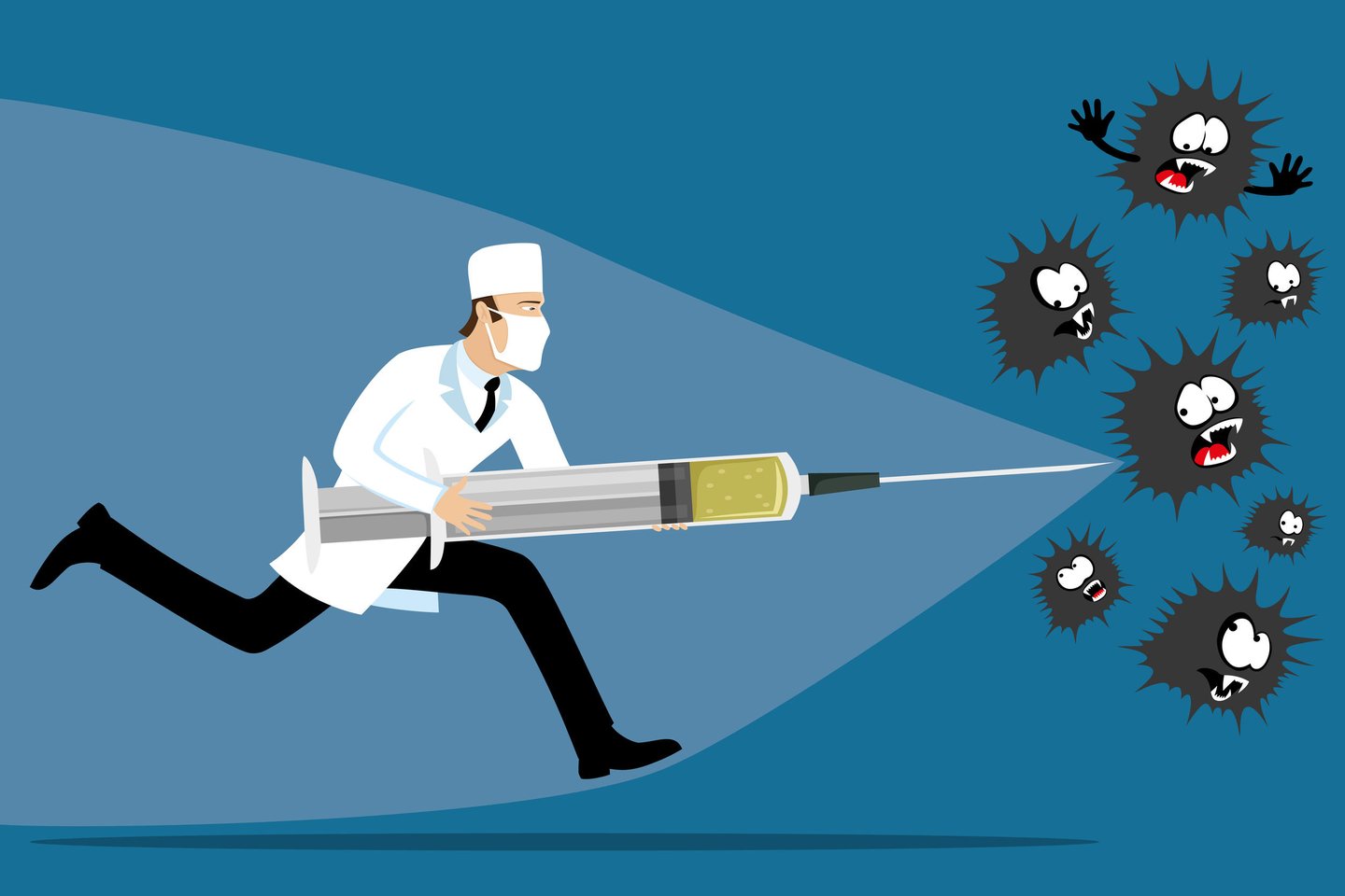 Gydytojai taip pat sunkiai dirba rūpindamiesi jau sergančiais žmonėmis. Mokslininkai bando pagaminti skiepus nuo koronaviruso – tokius, kokiais jus skiepijo ir gydytojo kabinete. Kiti bando gaminti vaistus, kurie padėtų jau sergantiems žmonėms pasveikti.