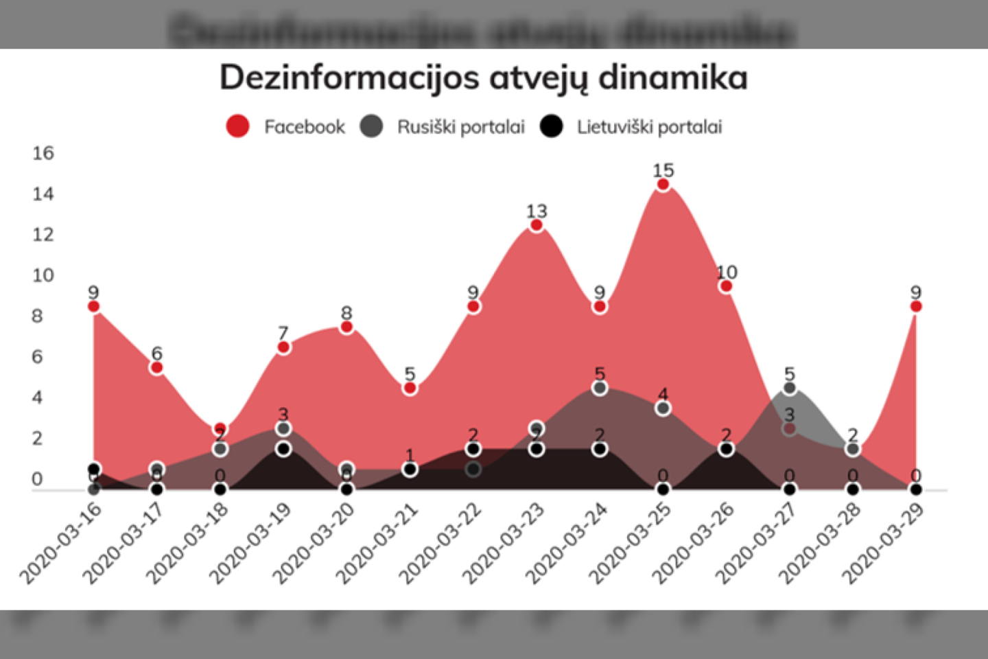 Kovo 16-29 dienomis „Demaskuok.lt“ fiksavo 135 propagandos ir dezinformacijos atvejus Lietuvos ir Rusijos interneto portaluose bei „Facebook“. Klaidinanti informacija labiausiai plinta pastarajame – beveik 7-ios iš 10-ies pasirodančių melagienų aptinkamos būtent šiame socialiniame tinkle. Pagrindiniai tokių žinučių šaltiniai yra koronaviruso aptarimui itin greitai susibūrusios grupės, iš kurių dvi didžiausios – „Coronavirus COVID19“ ir „⚠ Koronavirusas ⚠ (COVID-19)“ išsiskiria ypatinga klaidinančios informacijos gausa.