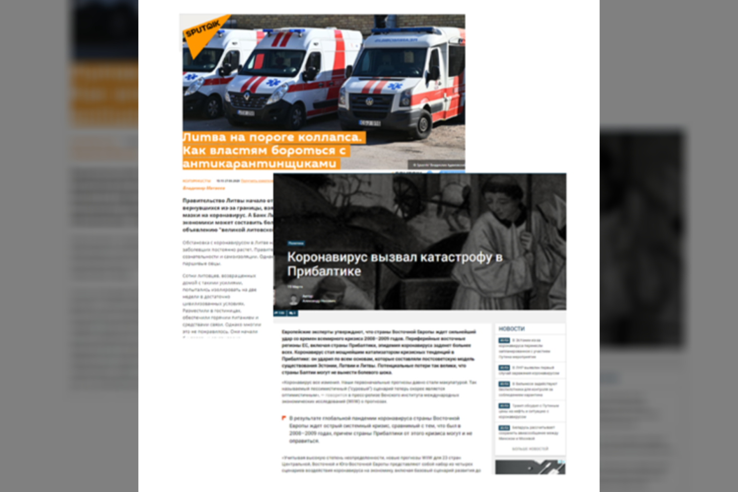 „Lietuvai nepavyksta užkirsti kelio COVID-19 pandemijai“, „NATO nerūpi Lietuva“ – dažniausios dezinformacijos žinutės tinklalapiuose. Juose net pasirodė pavieniai straipsniai, kad už koronaviruso sklaidą Kryme yra atsakinga Lietuva arba svarstymai, kad Rusija būtų išgelbėjusi Baltijos šalis nuo COVID-19.