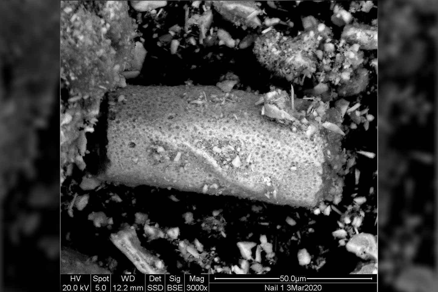 Ištyrus vinis elektroniniu mikroskopu, ant jų taip pat rasta medienos fragmentų, kuriuos mokslininkai identifikavo kaip kedrą – ir mažyčių kaulų fragmentų, kurie, deja, dabar jau suakmenėję. Šie atradimai padidina galimybę, kad vinys buvo naudojami nukryžiavime – tačiau galutinai to neįrodo, teigia A.Shimronas.