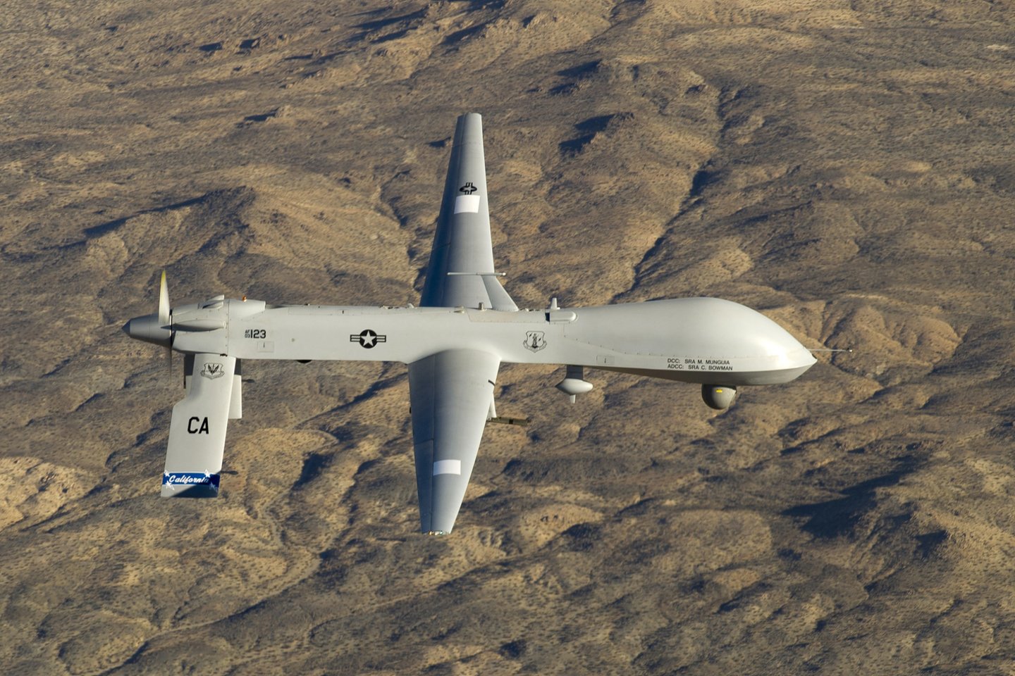 Dešimtojo dešimtmečio pradžioje sukurtas žvalgybai iš oro ir išankstiniam stebėjimui, „Predator“ turi kameras ir kitus jutiklius. Dronas buvo modifikuotas ir patobulintas taip, kad galėtų gabentis ir paleisti dvi „AGM-114 Hellfire“ raketas, taip pat naudoti šaudmenis.