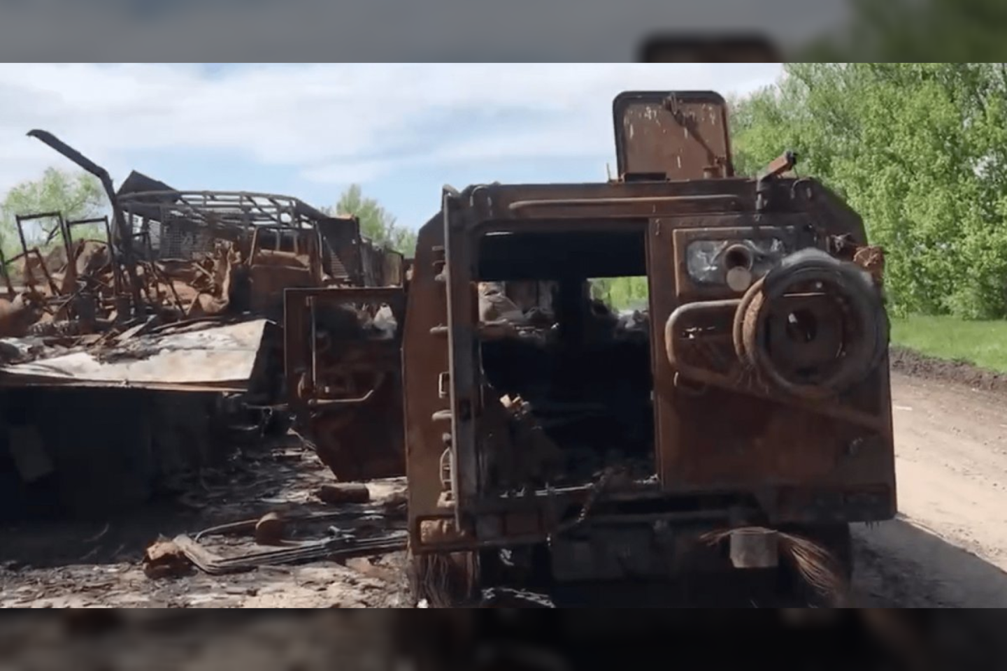 Toliau pateiktame vaizdo įraše matyti transporto priemonių liekanos, daugelis jų – ne karinės, o policijos, kurias Ukrainos ginkluotosios pajėgos sunaikino kelyje į Charkovą.