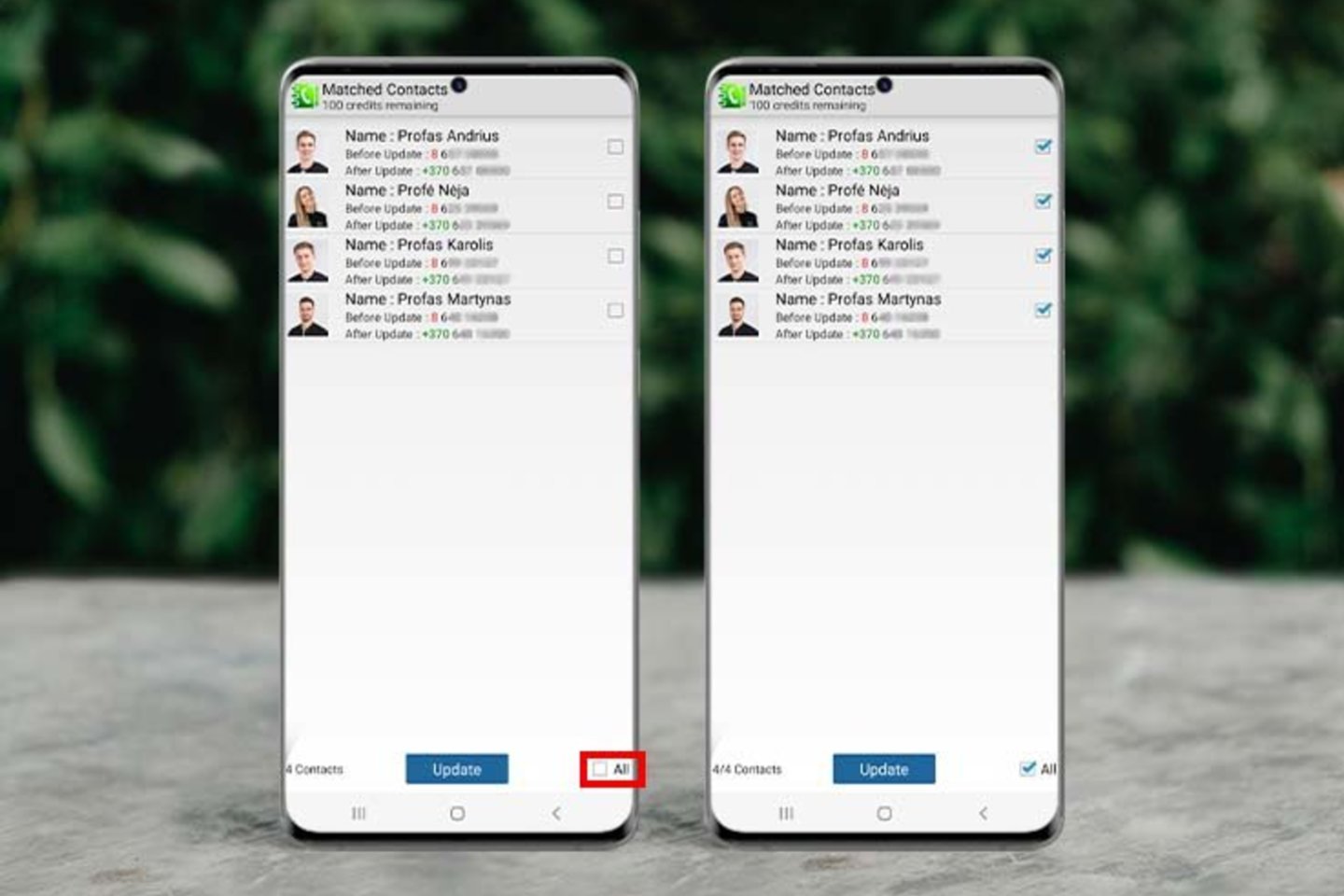 „Ekrano dešinės pusės apačioje spauskite „All“ – taip pažymėsite visus kontaktus, kuriuos norite pataisyti. Jei pastebite telefono numerius, kurių keisti nenorite, juos atžymėkite“, – sako ekspertas.