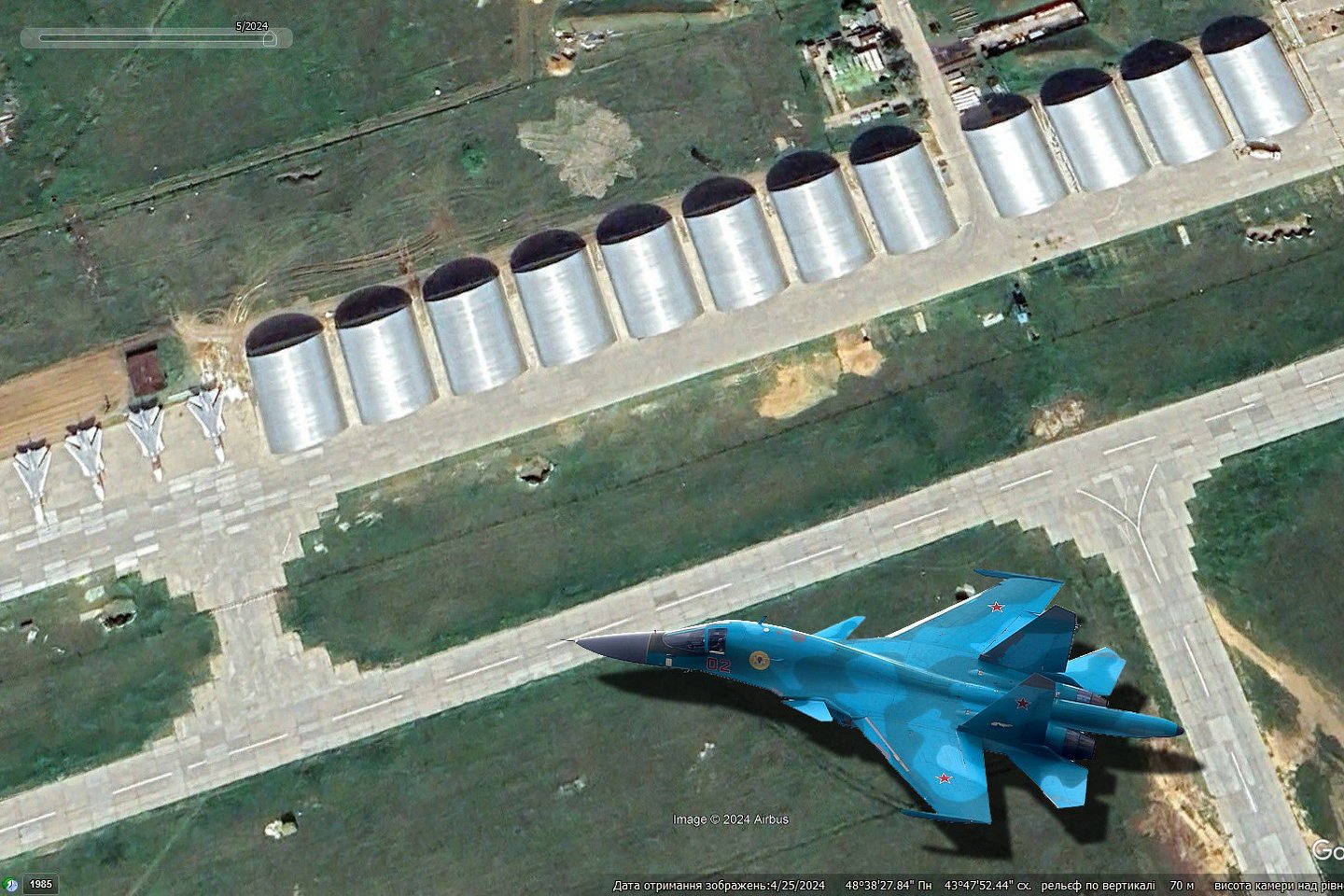 Nevyriausybinė organizacija „Ukrainos karinis centras“ praneša apie Rusijos vykdomus darbus. Kaip matyti iš palydovinių nuotraukų, Volgogrado srityje, už 300 km nuo Ukrainos sienos esančiame Marynovkos aerodrome, pastatyta net 12 naujų angarų, kuriuose laikomi lėktuvai „Su-34“ ir „Su-24“.