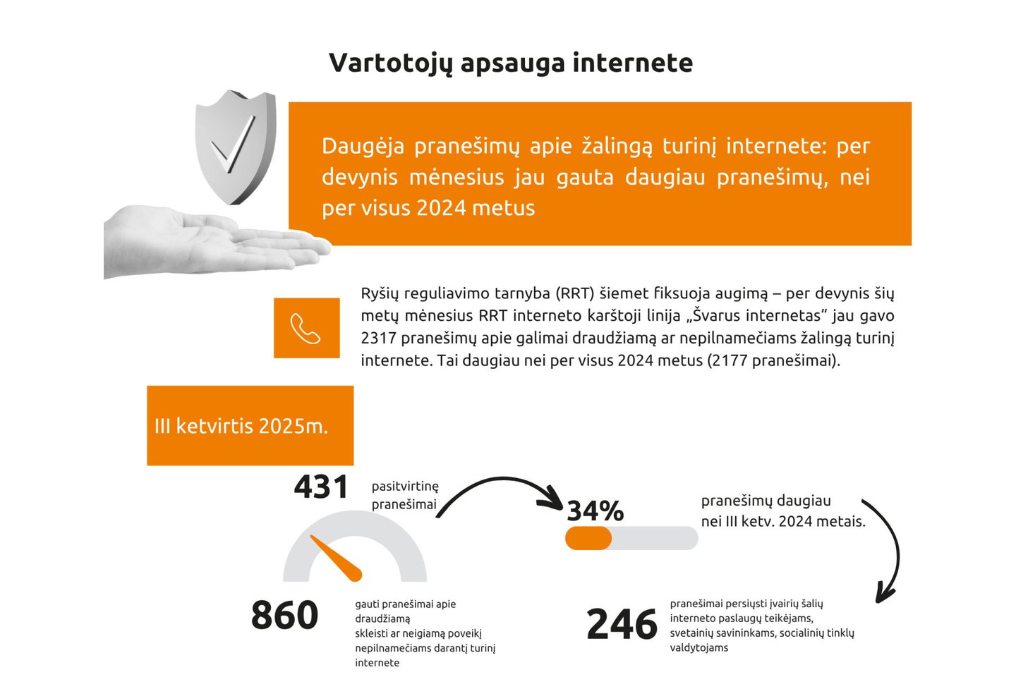 „Didėjantis pranešimų skaičius rodo, kad visuomenė tampa vis sąmoningesnė ir aktyviau reaguoja į netinkamą turinį internete. Kiekvienas pranešimas padeda kurti saugesnę interneto aplinką, ypač vaikams“, – pastebi RRT pirmininkė Jūratė Šovienė.