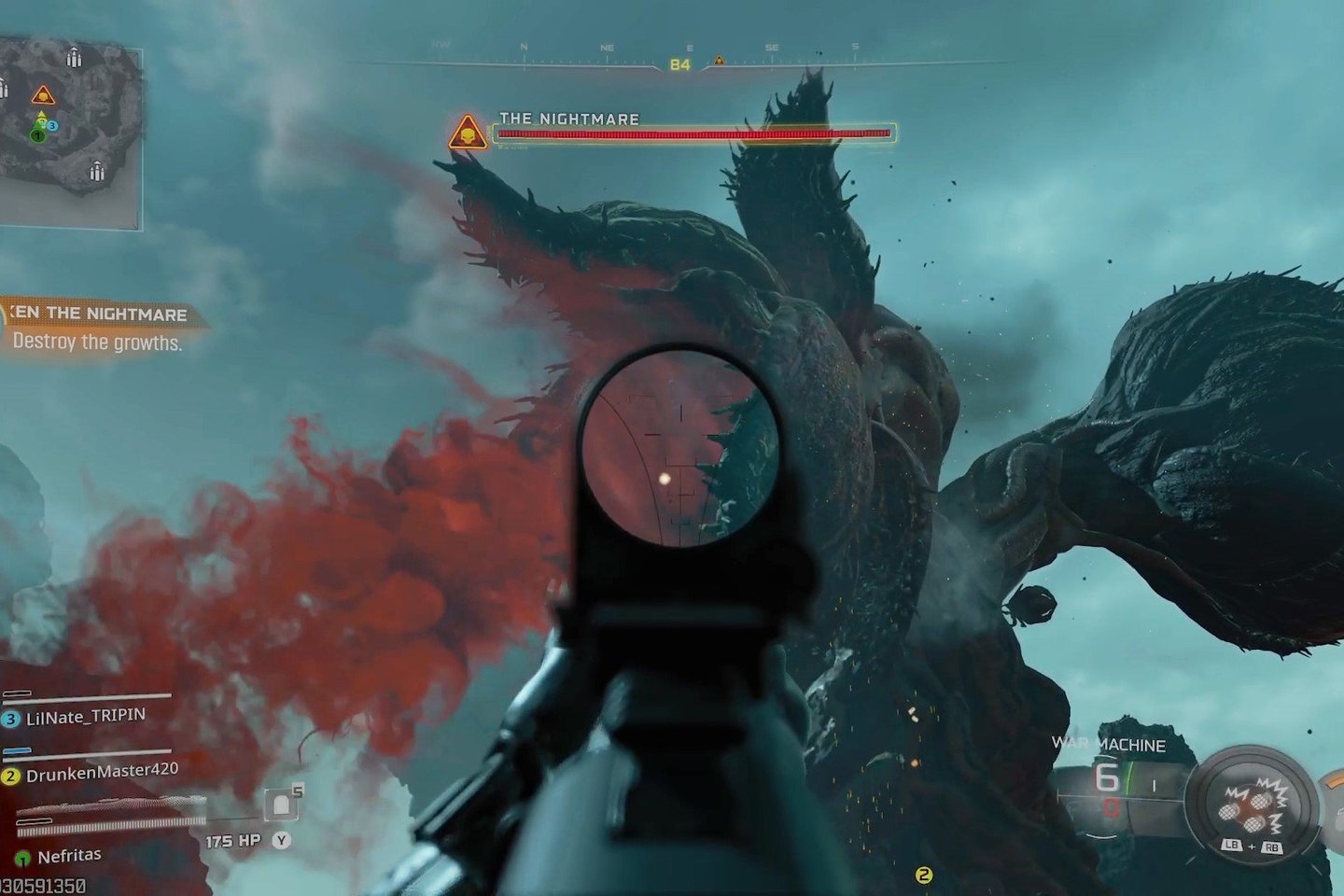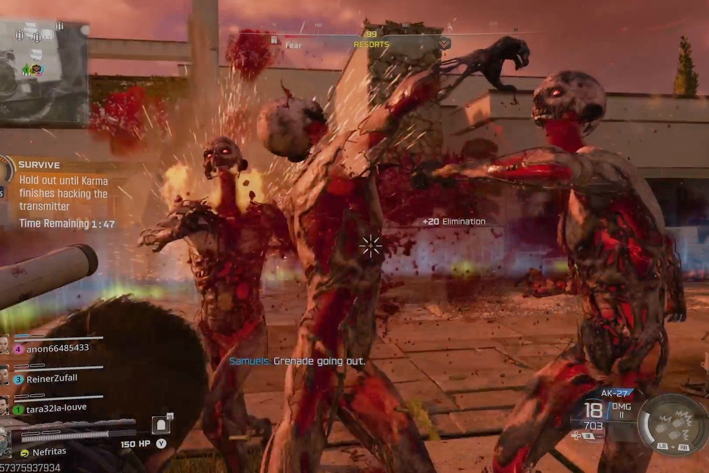 Na ir, žinoma, zombiai, kurių režimas šiame žaidime grįžta į klasikinį raundų formatą: iki 4 žaidėjų, nuolatinės zombių bangos ir žemėlapių atidarinėjimas. Pagrindinis žemėlapis žaidžiant šiuo metu yra „Ashes of the Damned“ – milžiniška lokacija, pilnai vykstanti „Dark Aether“ dimensijoje. Jei jums konkrečiai šis žemėlapis nepatinka – ką gi, teks laukti kito, bet pasirinkimo šiuo metu nėra. Kita vertus, skelbiama, kad tai – pats didžiausias kada nors kurtas žemėlapis zombių formate.