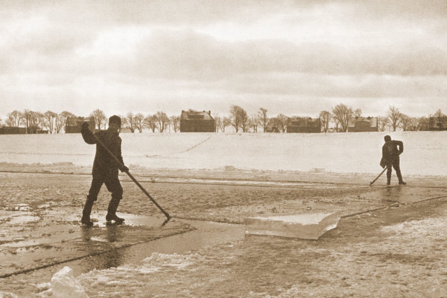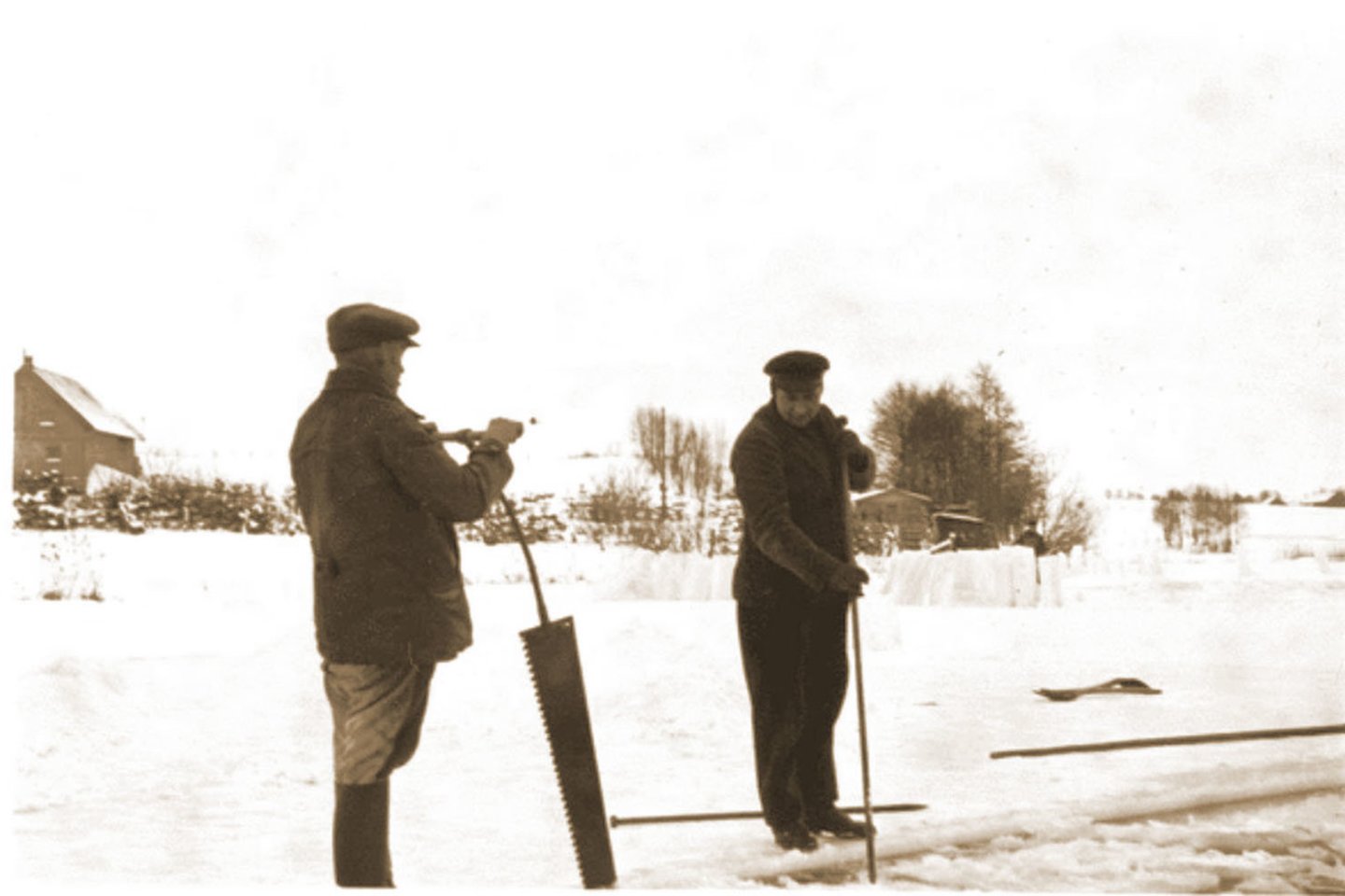 Prieš „ledo derliaus“ nuėmimą ežero paviršius kruopščiai nuvalomas. Vyrai išpjautus luitus į vežimus užtempia specialiomis medinėmis „rampomis“ ir sandėliuoja, apkasę pjuvenomis, šaltrūsiuose.