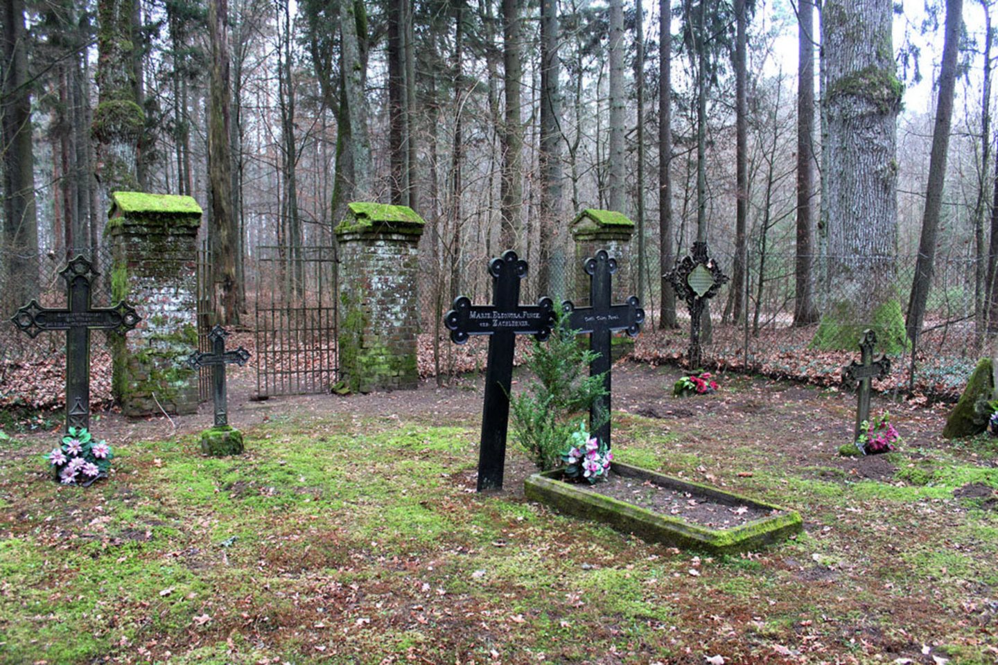 Vos už kelių šimtų metrų nuo jo slypi dar vienas įstabus reliktas: miške, šalia keliuko, išliko senosios dvarininkų, pirmųjų miškininkų kapinaitės su visiškai netikėtu palaidojimu. Mažytėse kapinaitėse stirkso medinis kuolas su prikalta kuklia lentele. Joje – užrašas vokiečių kalba: „ZWEI UNEKANNTE RUSSEN 3.3.1916“ (liet. „du neatpažinti rusai“). Galima manyti, kad vokiečiai palaidojo Pirmojo pasaulinio karo metu 1916-aisiais žuvusius rusų kareivius.