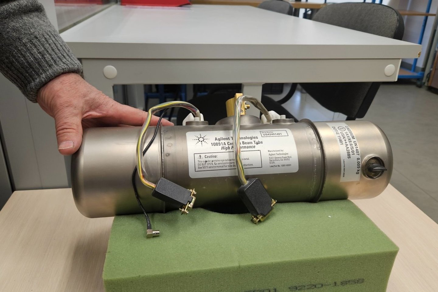 Kabineto šeimininkas R. Miškinis yra lietuviškojo Nacionalinio metrologijos instituto (NMI) Laiko ir dažnio etalono laboratorijos vadovas. O šio instituto funkcijas šalyje atlieka FTMC. Gali pasirodyti painu, tad geriau dėmesį skirkime laboratorijoje veikiantiems atominiams laikrodžiams. Posakis „svarbi kiekviena sekundė“ čia įgauna ypatingą prasmę: įrenginiai matuoja laiką milijardinių sekundės dalių tikslumu, o tai būtina ne tik bendram viso pasaulio laiko apskaitos palaikymui, bet ir tokioms preciziško tikslumo reikalingoms operacijoms kaip navigacinių sistemų veikimas ar tarptautiniai bankiniai pavedimai.