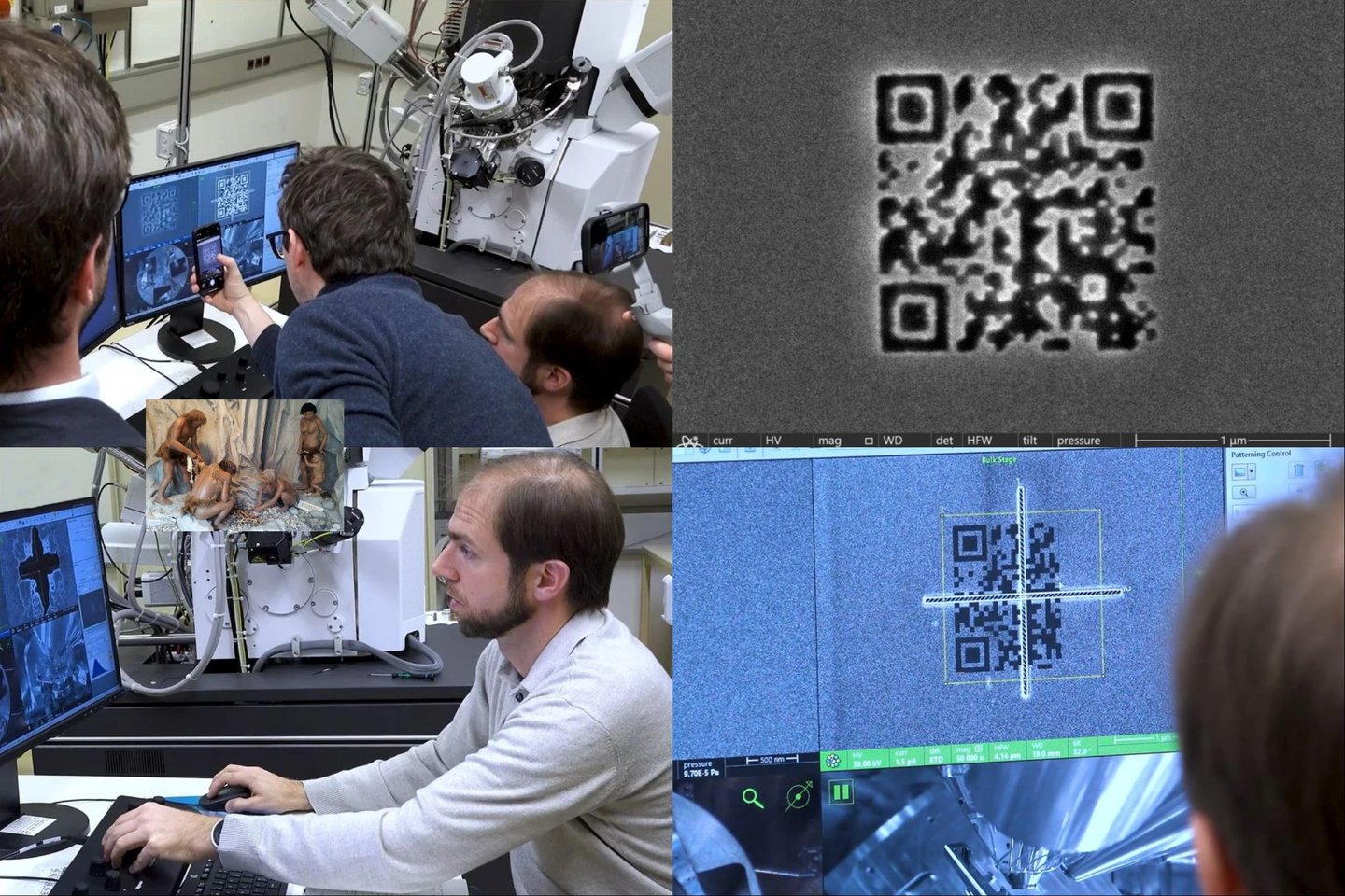 Kiekvieno QR kodo pikselio skersmuo yra vos 49 nanometrai – tai net mažiau nei bakterijos dydis, todėl šis kodas užsitikrino vietą Guinnesso rekordų knygoje. Jis buvo sukurtas fokusuotu jonų pluoštu išgraviruojant QR tinklelį plonoje keraminėje plėvelėje. Jis yra maždaug 37 proc. ankstesnio pasaulio rekordininko dydžio ir maždaug 0,0000004 proc. standartinio 0,8 kvadratinio colio (2 cm2) QR kodo dydžio.