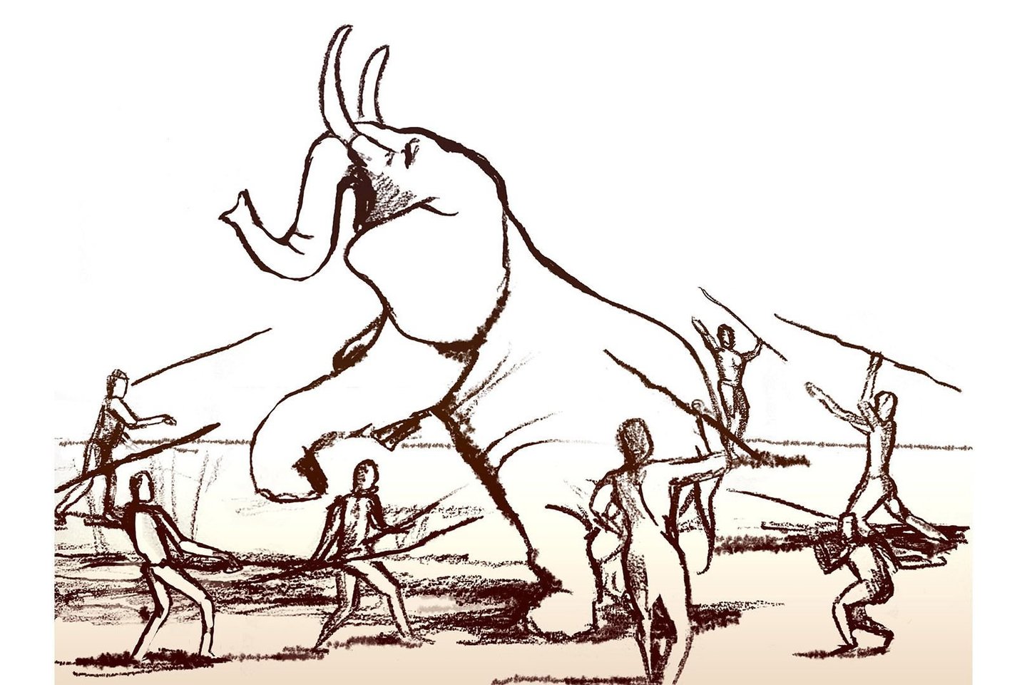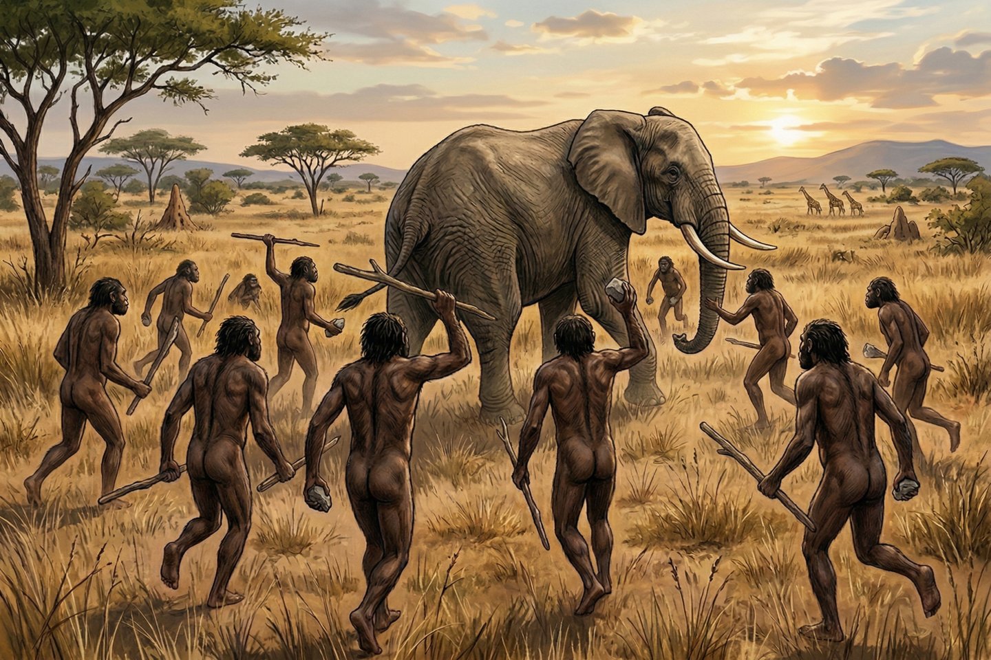 Tačiau dramblio išdarinėjimas yra milžiniškas uždavinys. Tam reikalingi aštrūs akmeniniai įrankiai ir svarbiausia, socialinis bendradarbiavimas. Mūsų protėviai turėjo dirbti kartu, kad apgintų skerdeną nuo plėšrūnų - tokių kaip kardadantės katės ir milžiniškos hienos - o kiti dirbo, kad išgautų mėsą ir čiulpus.