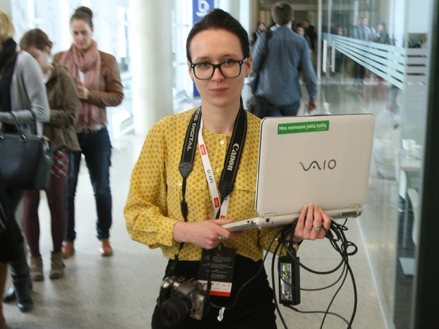 Po „Litexpo“ parodų rūmus vaikštinėjantys technologijų gerbėjai griauna prie kompiuterio džiūstančio tylenio įvaizdį.