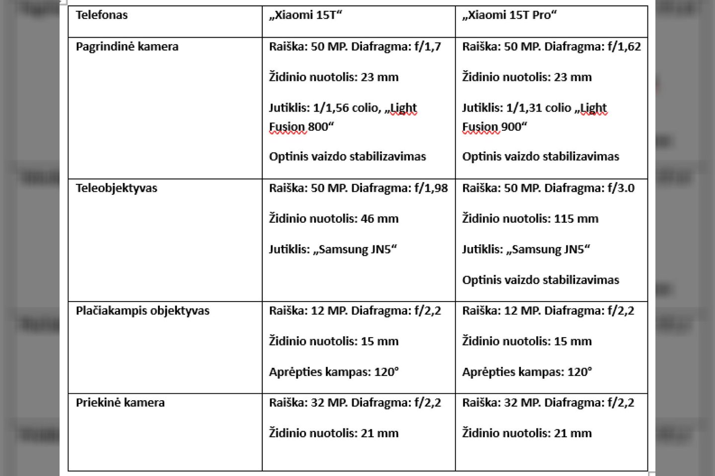 „Xiaomi 15T“ ir „Xiaomi 15T Pro“ telefonai turi labai įspūdingas kameras aprūpintas naujausios kartos „Leica“ optika, tad kalbant apie fotografiją, šie telefonai bus vieni iš savo kainų segmento lyderių. Abiejų telefonų kamerų bloke yra trys kameros – 50 MP pagrindinė, 50 MP teleobjektyvas ir 12 MP plačiakampė – tačiau jos šiek tiek skiriasi, todėl lentelėje pateiksiu jų skirtumus.