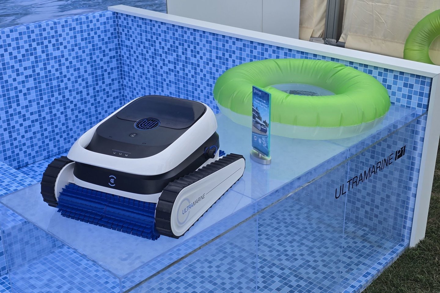 Dar vienas pristatytas bendrovės gaminys – baseinų valymo robotas „Ultramarine P1“. Tai – žoliapjovę kiek primenantis, bet povandeniniam baseino valymui sukurtas robotas, per valandą persiurbiantis 18 m3 vandens. Robote įrengta trijų pakopų valymo sistema: 4 guminiai voleliai, vandens siurblys ir dviejų sluoksnių (180 ir 3 mikronų) filtras. Taip, siurblys surenka ne tik didesnių gabaritų šiukšles (tarkime, prikritusius lapus), bet ir filtruoja baseino vandenį. Paprašytas patikslinti, Y. Liu nurodė, kad toks įrenginys gali rūpintis iki 5x25 m dydžio baseinu.