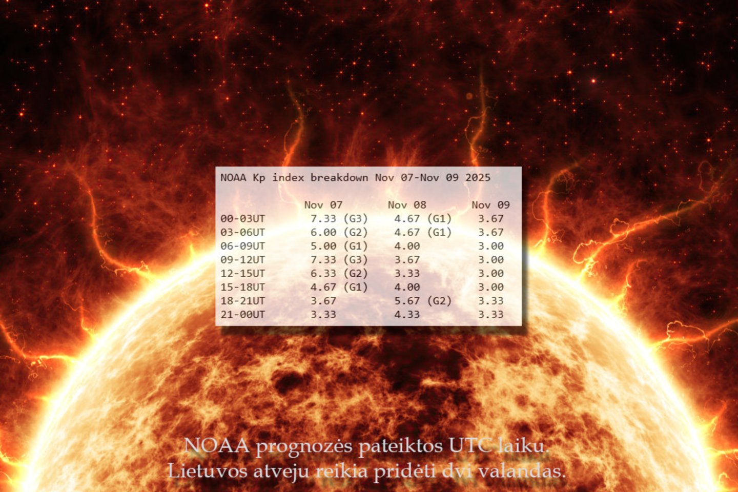 Vėliau geomagnetinė audra turėtų rimti, ir baigtis apie 20 val. Lietuvos laiku.