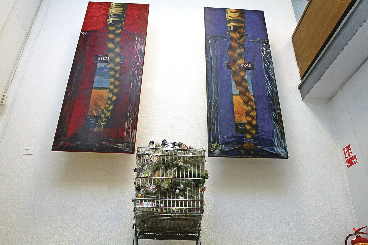 Menininkas Alvydas Urbietis sukūrė didžiulius vyno kamščius su neva ištekėjusio gėrimo, o gal kraujo, pėdsakais. Darbas pavadintas „Stigmatizacija“.