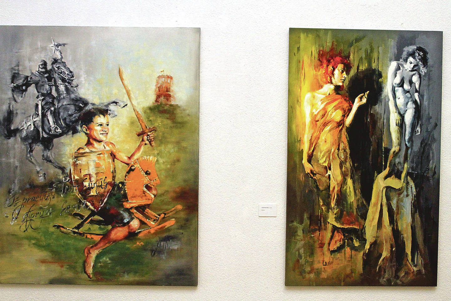 Alina Daiker-Gulbinienė nutapė „Mažojo raitelio svajonę“ – ant medinio žirgelio sėdintį vaiką, kuris svajoja šuoliuoti lyg Vytis.