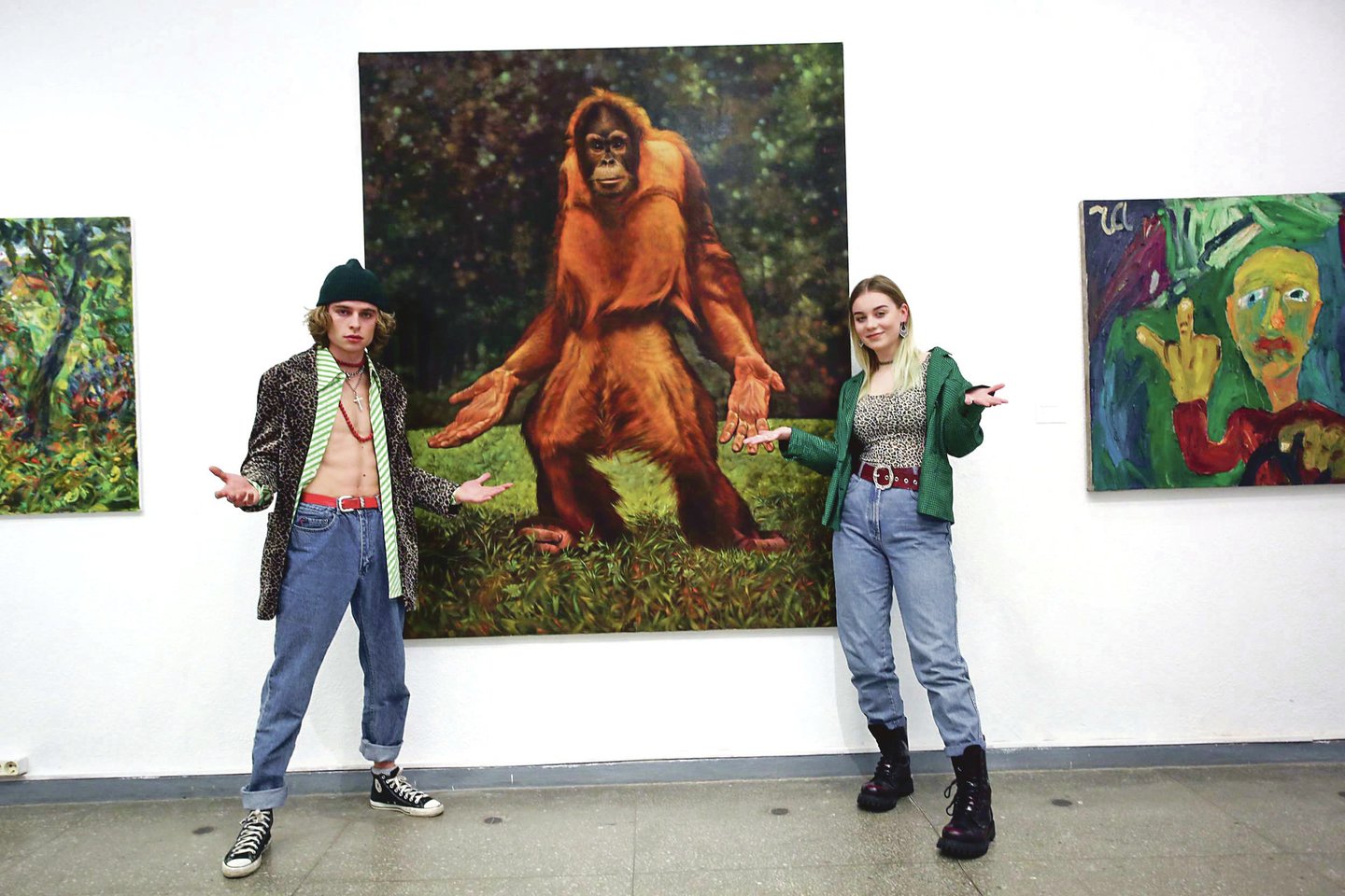 Kauno paveikslų galerijoje veikiančioje tradicinėje parodoje „Geriausias metų kūrinys 2018“, ekspozicijos centre, kabo tapybos darbas. Jame vaizduojama šimpanzė, tarsi skėsčiojanti letenomis. Darbo pavadinimas – „Ką daryti?“. Tai – dailininko P.Griušio praėjusią vasarą sukurta drobė.