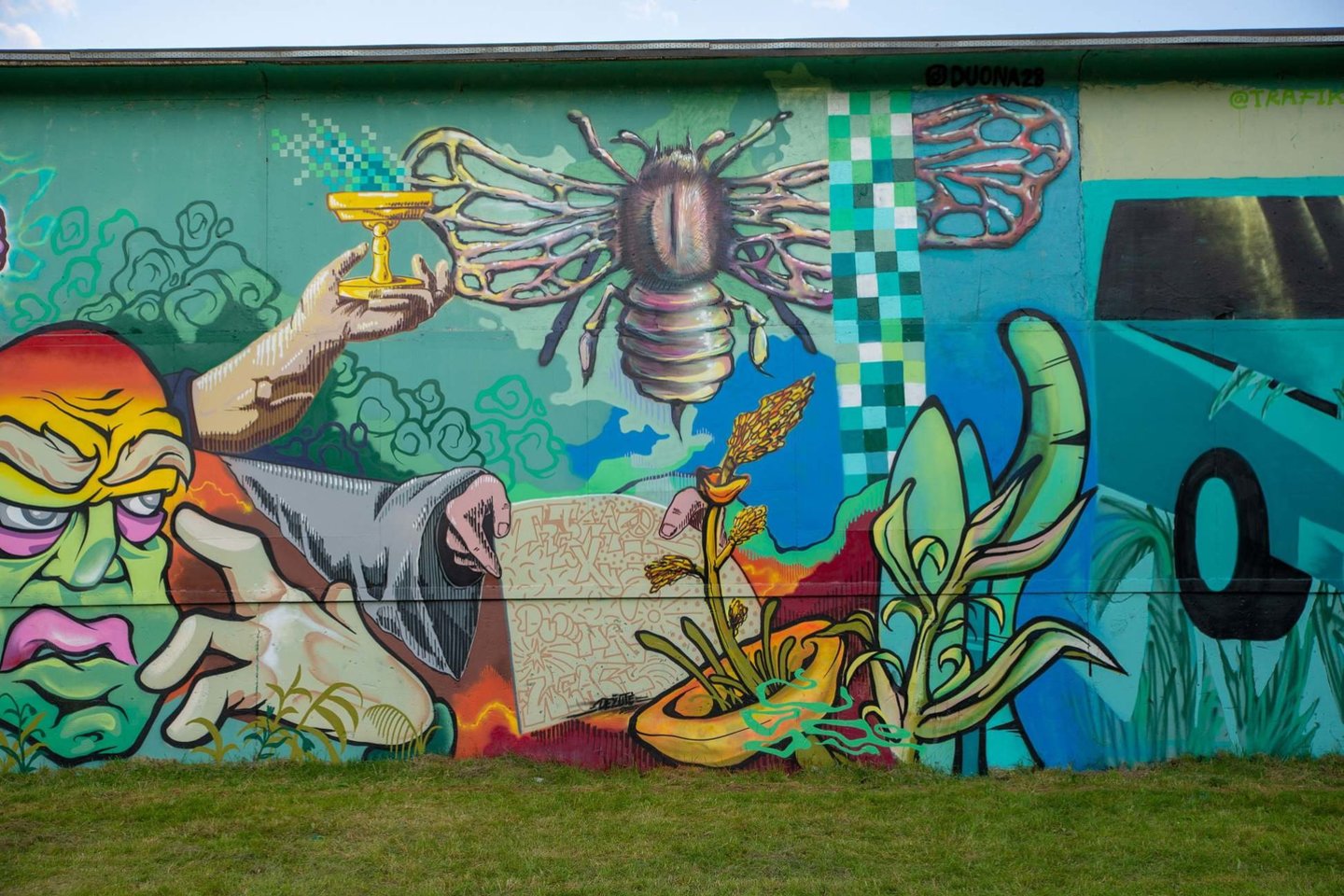 Abiejose erdvėse galėjo piešti visi norintys, bet pagrindinius kūrinius Kalniečių parke ant sienos paliko 12 gatvės meno kūrėjų iš Kauno, Vilniaus, Alytaus ir Klaipėdos. Jie kauniečiams padovanojo 9 skirtingus paveikslus.