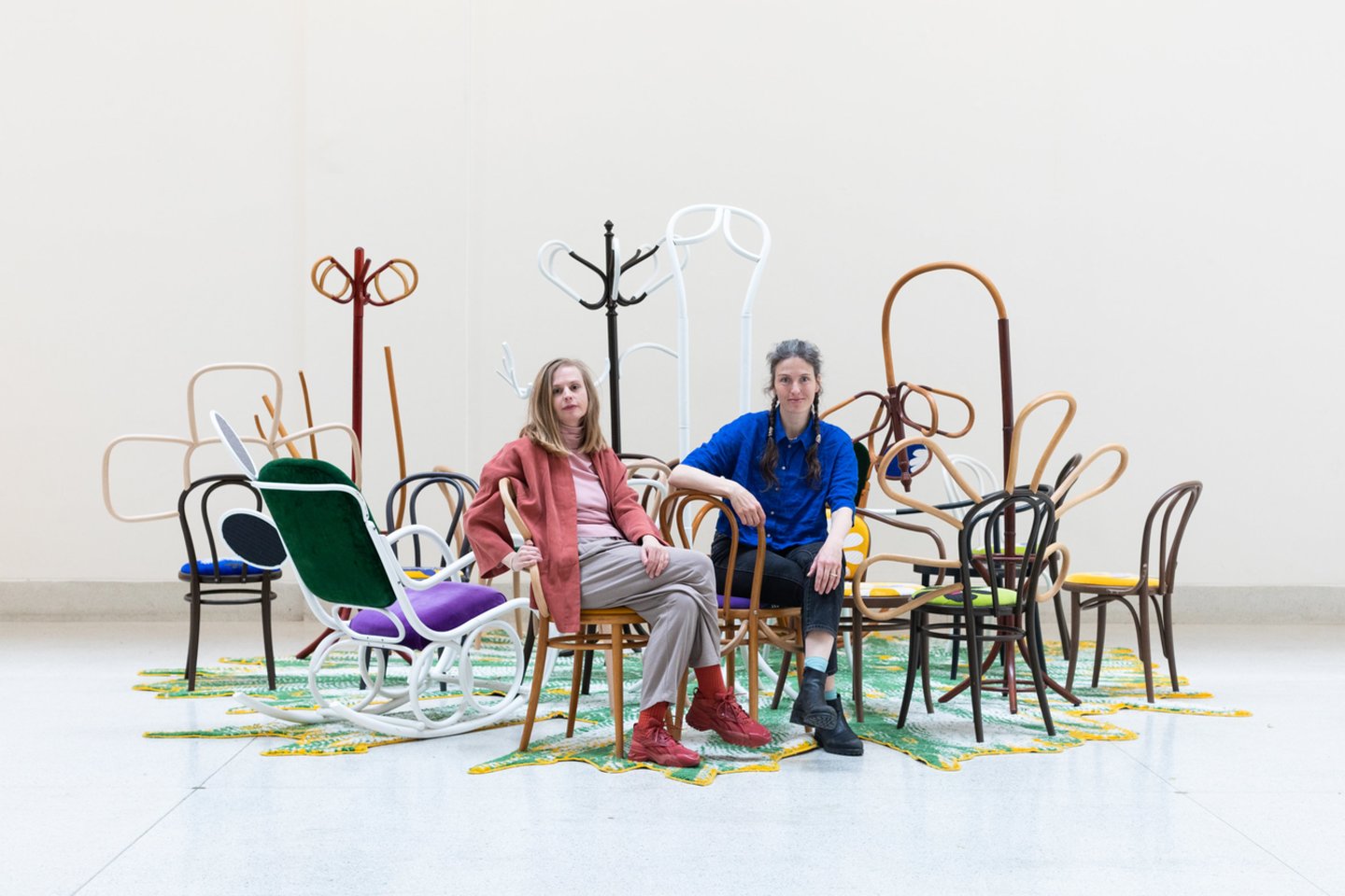 Kartu su De Clercq kūrinių pristatymu ŠMC bus atidaryta ir čekų menininkių dueto Barboros Fastrovos ir Johanos Pošovos vieno kūrinio paroda „Krūtys, vaikai, padarai ir atliekos“. Tai – iš kelių segmentų sudarytas gobelenas, kuriam sukurti panaudoti dėvėti drabužiai, patalynė ir išmesti paruošti gamyklinių audinių likučiai. Kūrinyje išsiuvinėta scena iliustruoja ne tik patį gobeleno atsiradimo procesą, bet ir žmonių, augalų bei atliekų metamorfozę. Be aplinkosauginės žinios, gobelenas subtiliai perteikia ir labai asmenišką abiem menininkėms motinystės temą. Ji nagrinėjama tiek tiesiogiai, nes abi menininkės yra mamos, tiek alegoriškai, per Motinos Žemės, teikiančios gyvybę, įvaizdį.