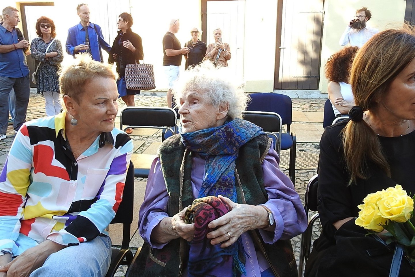 * Garbaus amžiaus sulaukusi M.Švažienė į jubiliejinę parodą Klaipėdoje atvyko ne tuščiomis – pristatė J.Švažo kūrybos motyvais nuaustą erdvinį gobeleną. Bene pati vyriausia Lietuvos menininkė iki šiol žvitriai pokšėdama staklėmis tęsia savo kūrybinius eksperimentus, vieną po kito kuria gobelenus.