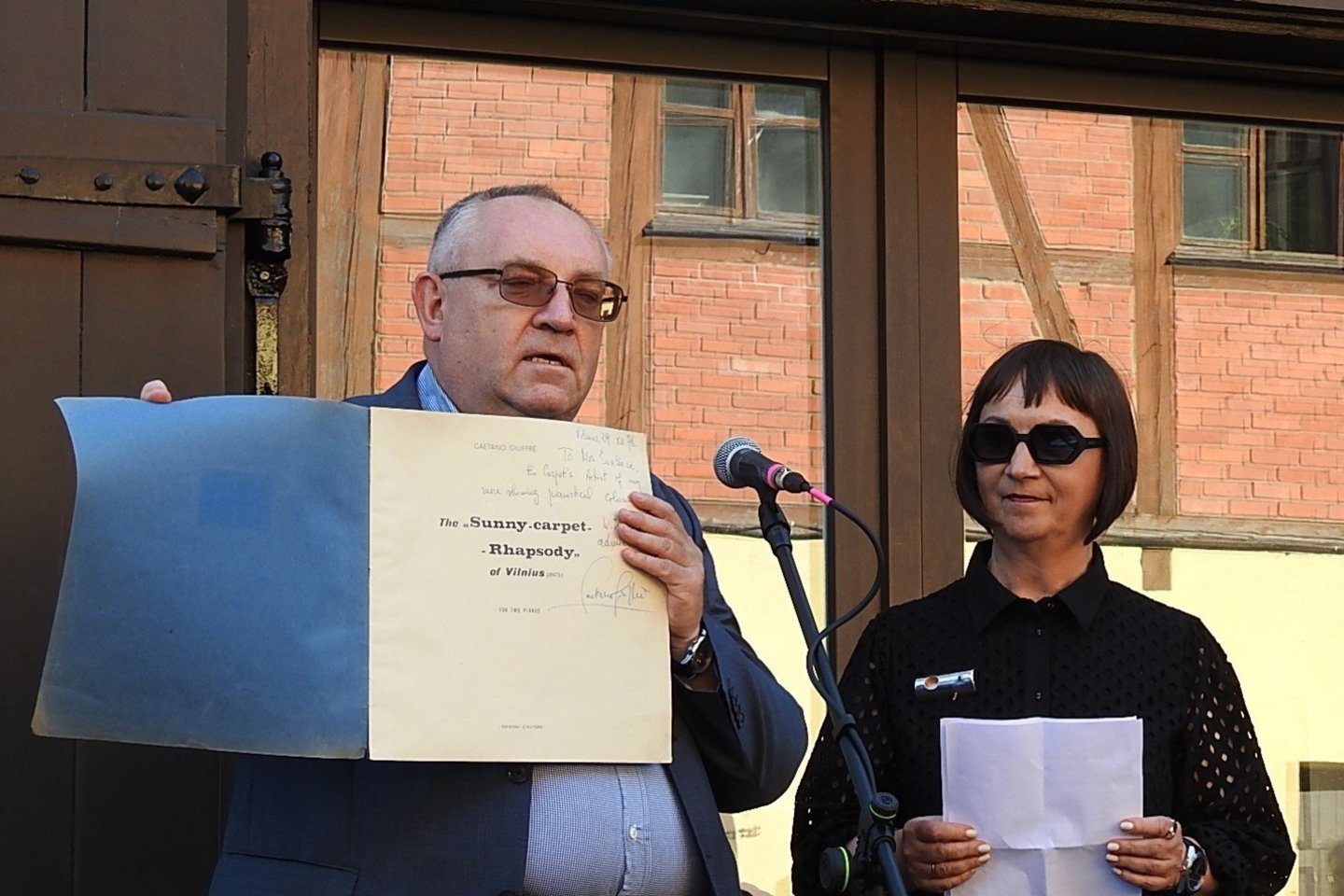 * Tik dabar J.Švažo paveikslų fone nuskambėjo jo žmonai dedikuotos rapsodijos įrašas. Gana sudėtingą šviesaus atminimo G.Giuffre kūrinį dviem fortepijonams pirmą kartą atliko Klaipėdos S.Šimkaus konservatorijos pianistės G.Simaitytė ir K.Budvydytė-Mejerė.