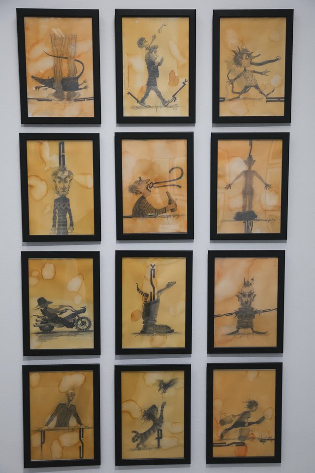 Pasak parodos kuratorės Jolitos Liškevičienės, dailininkas vienodai atsidėjęs kuria estampus, plakatus, iliustracijas, kaligrafiją, o kai viskas pabosta, ima į rankas teptuką ir tapo draugiškus šaržus – bičiulių, politikų, kino ir muzikos žvaigždžių. Visuose savo kūrybos baruose jis laužo nusistovėjusias normas įnešdamas lengvumo, sąmojo, spalvų, skambesio.