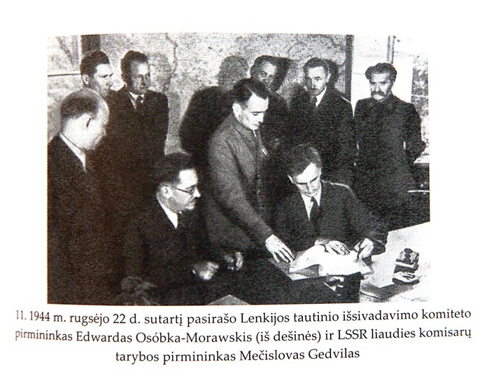 1944 metų rugsėjo 22 dieną Lenkijoje, Liubline, sovietinės Lietuvos liaudies komisarų tarybos pirmininkas Mečislovas Gedvilas ir Lenkijos tautinio išsivadavimo komiteto vadovas Edwardas Osobka-Morawskis pasirašė susitarimą dėl lietuvių evakavimo iš Lenkijos teritorijos ir Lenkijos piliečių evakavimo iš Lietuvos teritorijos.