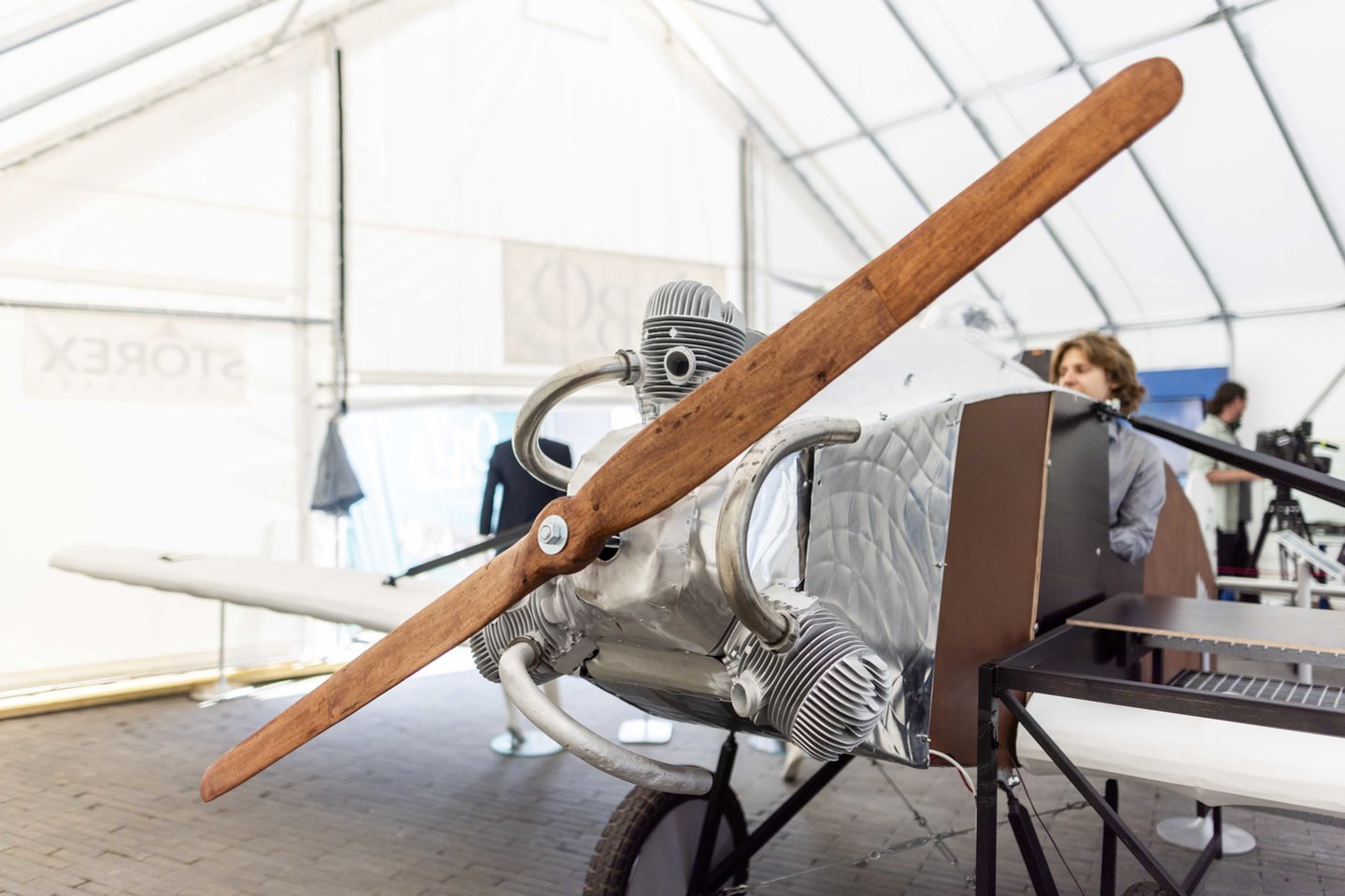 Specialiame angare pristatoma lėktuvo replika su piloto kabinoje integruotu simuliatoriumi, leidžiančiu interaktyviai patirti lėktuvo valdymą.