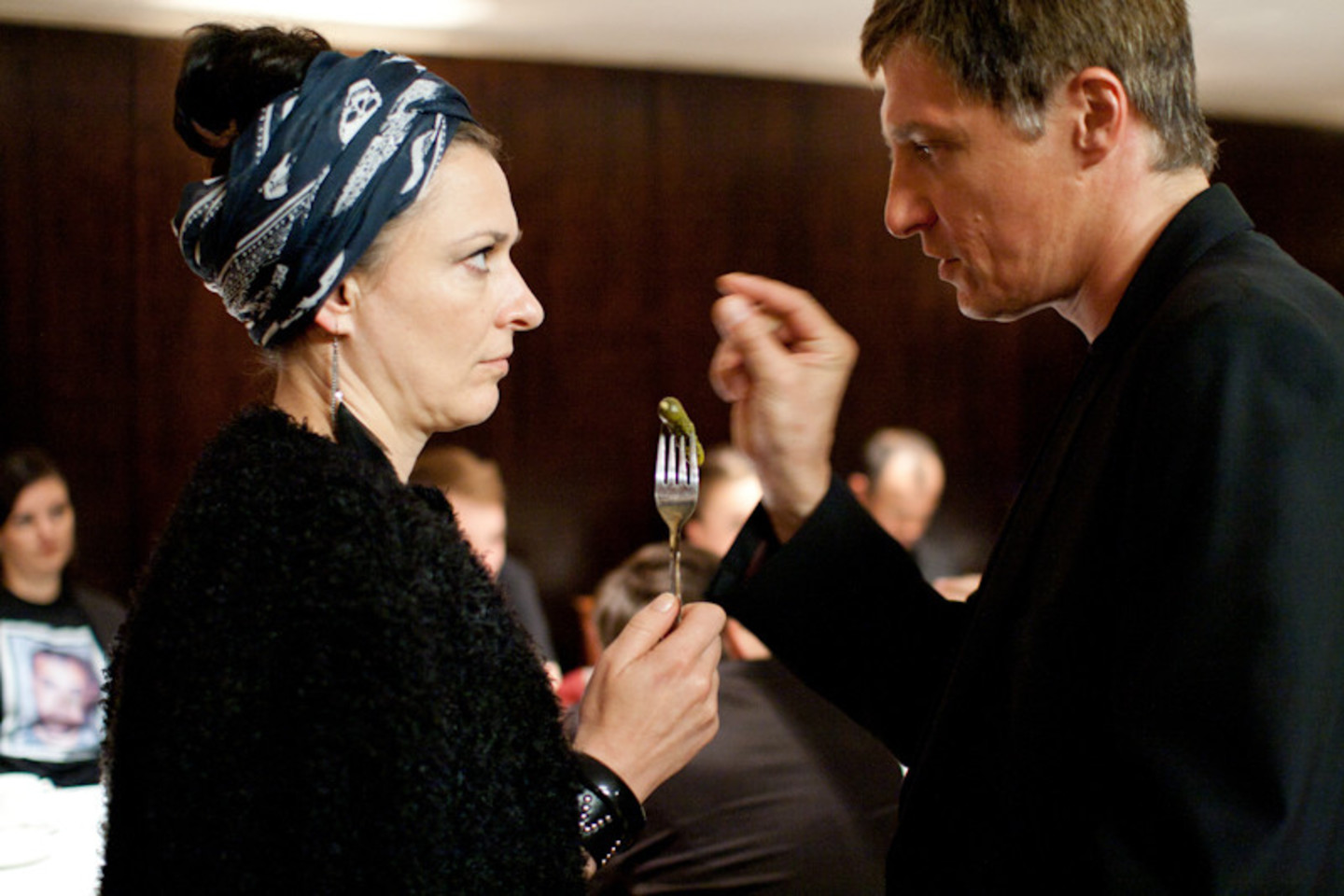 Kartu su pagrindinius herojus sukūrusiais aktoriais Gabija Jaraminaite, Dainiumi Gavenoniu ir E.Grybinaite filme taip pat nusifilmavo visas būrys Lietuvos kino ir teatro žiūrovams puikiai pažįstamų aktorių. Svarbiausias antraplanis – artimo Žmonos draugo – vaidmuo atiteko jau ne pirmą kartą filmavimo aikštelėje su G.Jaraminaite susitikusiam Giedriui Savickui. Tarptautinių festivalių žiūrovus iki ašarų prajuokinusios socialinės darbutojos vaidmenį sukūrė aktorė Rasa Samuolytė, skeptiško tardytojo rvaidmuo patikėtas Arūnui Sakalauskui, o daugelis kitų ne mažiau ryškių vaidmenų atiteko aktoriams Rimantei Valiukaitei, Justei Zinkevičiūtei, Ramūnui Cicėnui, Martynui Nedzinskui, Dariui Gumauskui, Juliui Žalakevičiui ir kitiems kino ir teatro talentams.