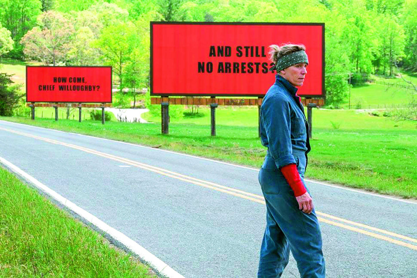 Atkaklios keršytojos vaidmenį atlieka nuspėjamai tobula F.McDormand, šerifo – netikėtai įvairiapusis Woody Harrelsonas. F.McDormand herojė tarsi nužengusi iš Granto Woodo drobės „Amerikietiška gotika“ ir įkūnija tipišką siaurų pažiūrų, bet tvirtų įsitikinimų Amerikos provincialę, visada pasiryžusią eiti iki galo.