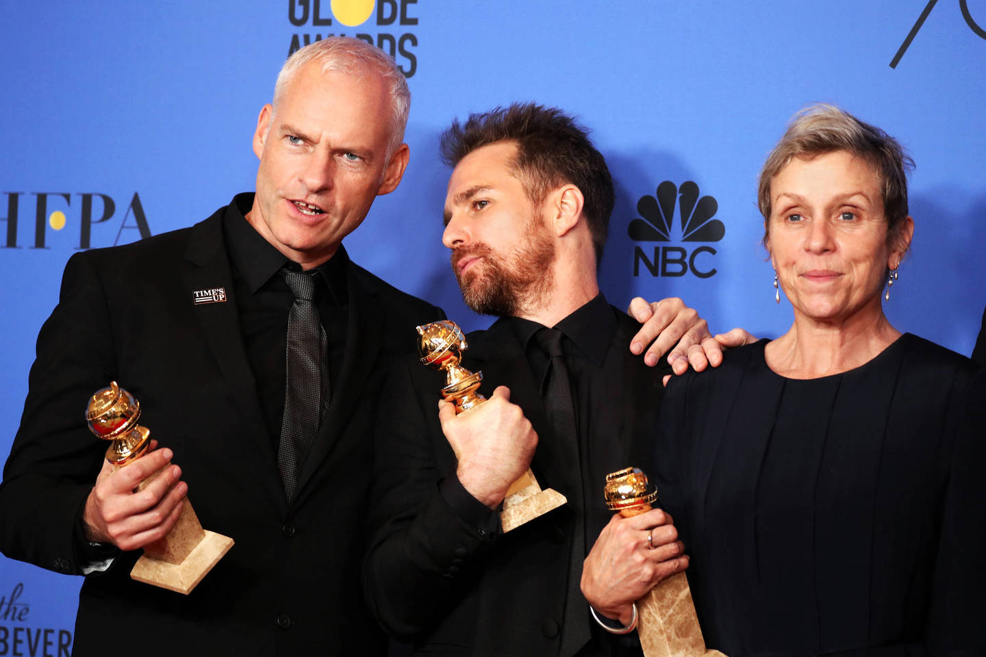 Režisieriaus ir scenaristo Martino McDonagho „Trys stendai prie Ebingo, Misūryje“ laimėjo geriausio dramos filmo ir geriausio scenarijaus, pagrindinio vaidmens atlikėja Frances McDormand – geriausios dramos aktorės, Samas Rockwellas – geriausio antraplanio aktoriaus gaublius.